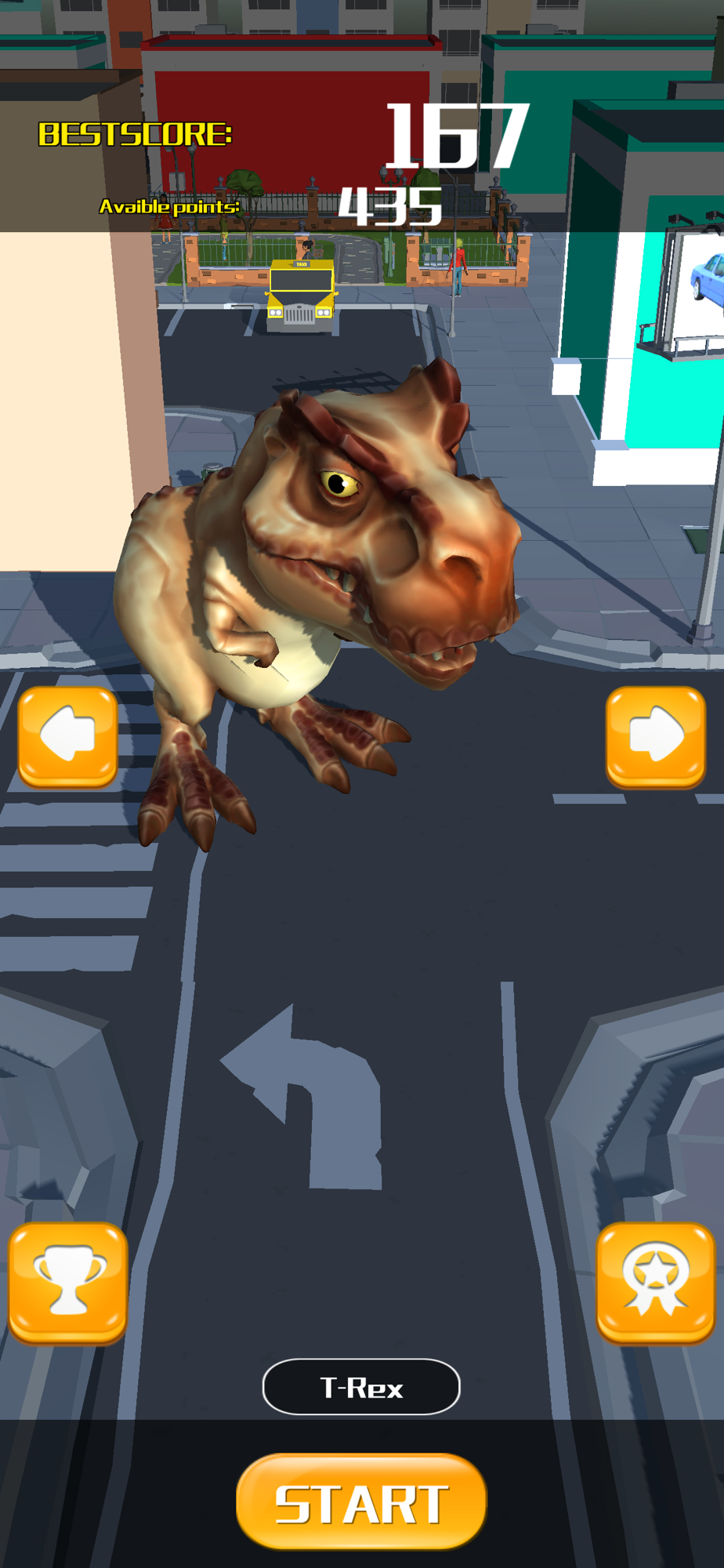 Our dinosaurs escape from the park and now demolish the city. You and others players try to survive as long as can. How big you can be? Eat everything if you are big enough.