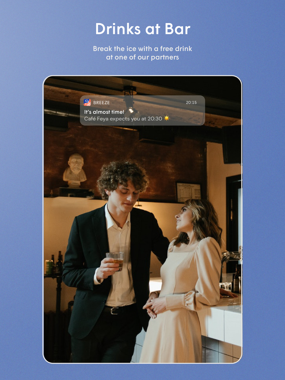 Breeze doesn’t show you ads and doesn’t sell data or premium subscriptions like other dating apps. You only pay for the actual date activity, that’s where Breeze takes a small margin. This aligns the intention of the app and the user: getting you on an actual date!