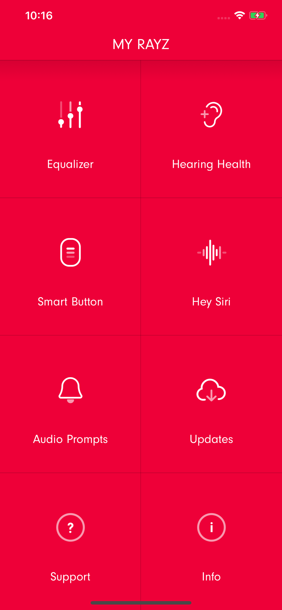 Protecting your hearing health is a lifetime daily wellness effort. The Rayz in-app hearing test is specifically designed with your Rayz headset in mind. Test 12 frequency bands for both left and right ear and the app will recommend an correcting EQ for any detected weakness.