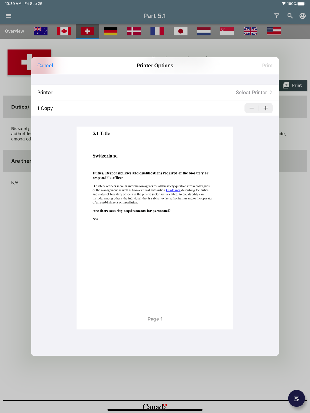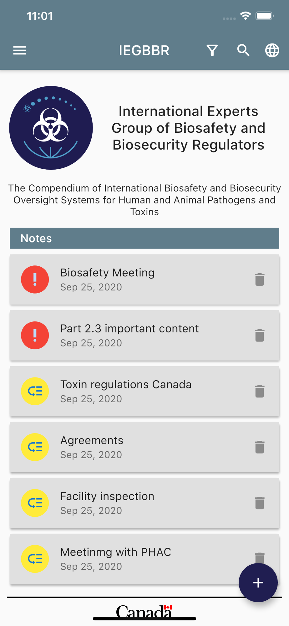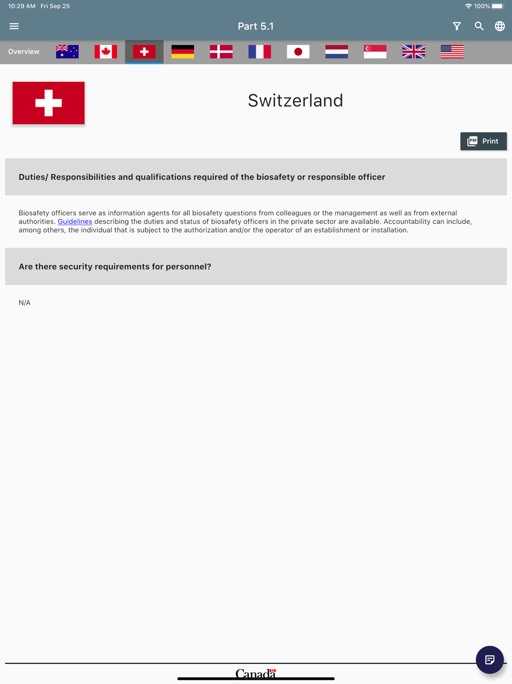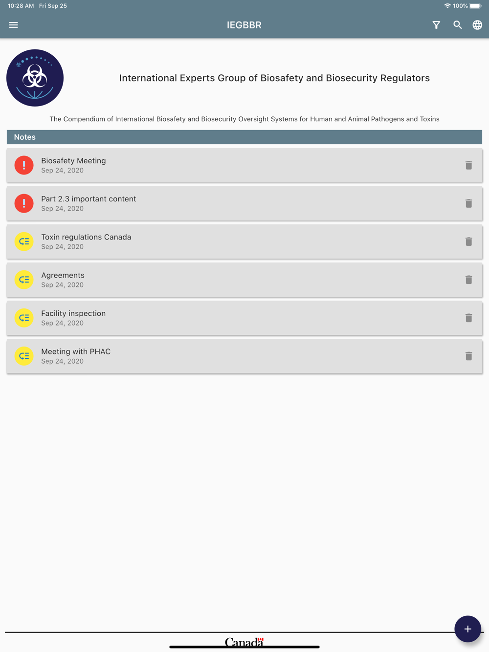 The mobile app will serve as a reference tool for countries that aim to develop or strengthen their national biosafety, biosecurity or dual-use oversight capacities. By providing 11 examples of national oversight systems, it can remove the necessity for extensive legwork prior to the development and implementation of oversight. The IEGBBR mobile app can be used hand in hand with other complementary capacity building reference tools that are available, such as the Joint External Evaluation assessments under the International Health Regulations and Canada’s Analytical Approach. The Compendium contributes to ongoing international biosafety and biosecurity efforts that exist internationally, including the Global Health Security Agenda, and strengthens national/regional compliance with commitments under the World Health Organization International Health Regulations, United Nations Security Council Resolution 1540, and the Biological and Toxin Weapons Convention.