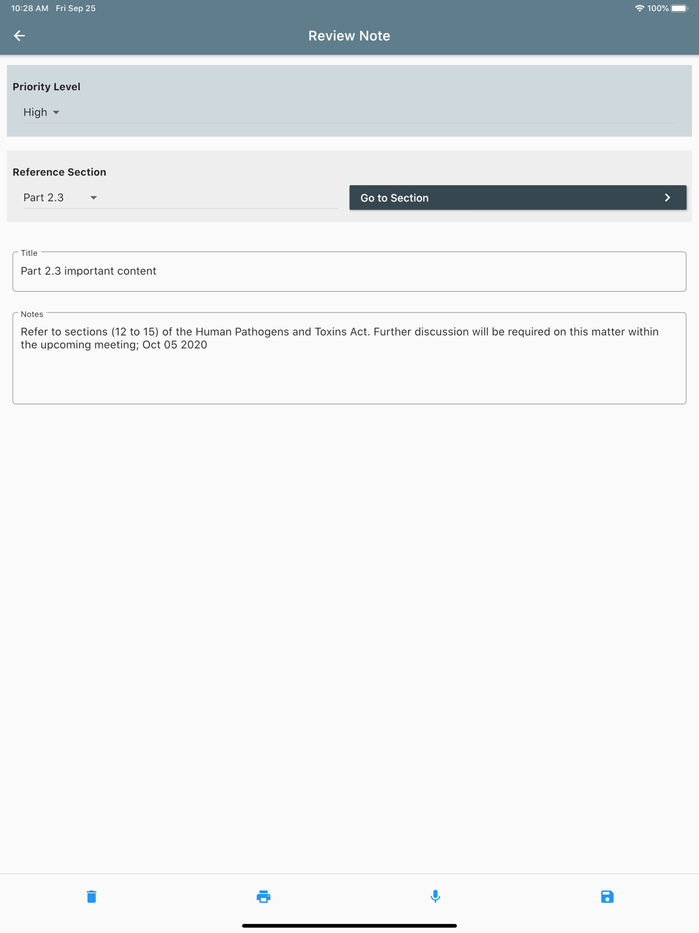 Content includes statutes and regulations and their regulatory authorities; biosafety- and biosecurity-related definitions and biosafety risk group designations; purpose, scope and activities; regulated pathogens and toxins; standards and policy instruments; processes and record management requirements for regulatory authorization; shipment and movement of biological agents and toxins; notification and reporting; risk assessment requirements; compliance promotion, monitoring, verification, and enforcement; inspection schemes; accountability and personnel security requirements; non-security personnel requirements and training; and biosafety and biosecurity outreach and awareness initiatives.