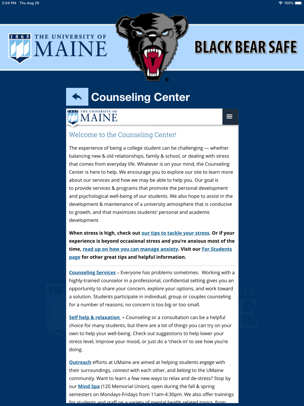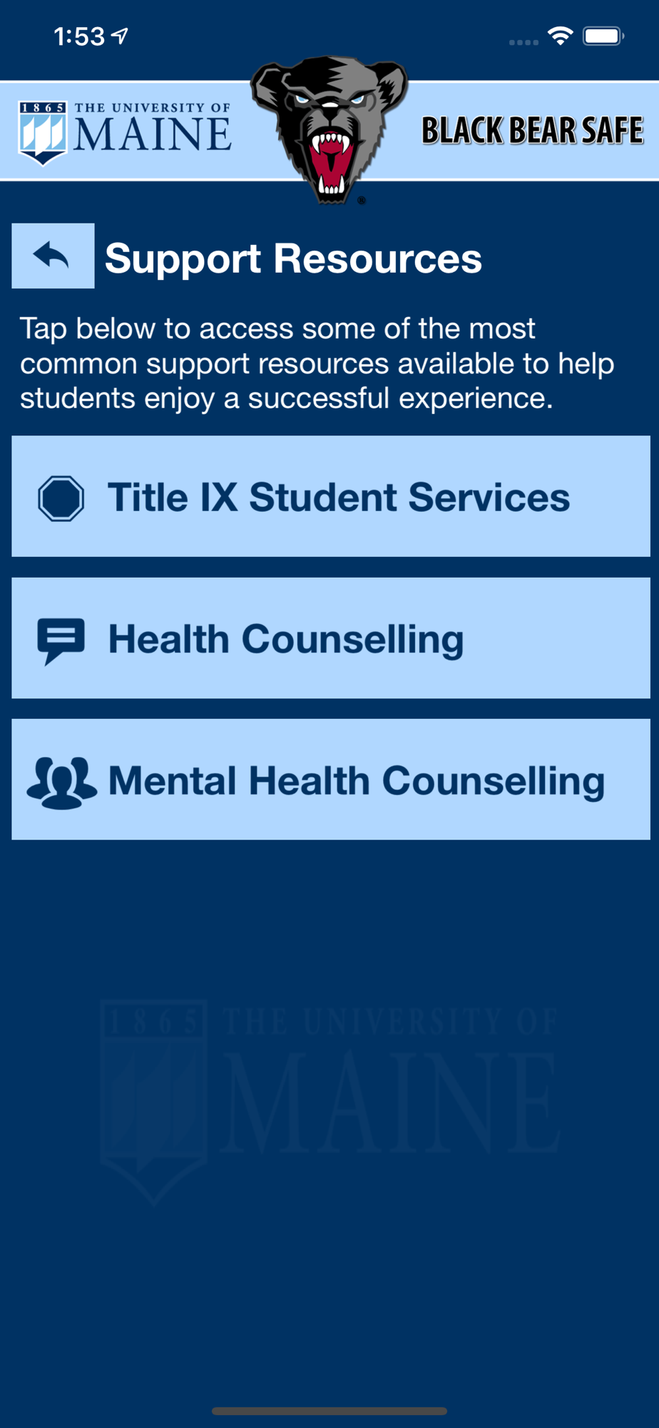 - Support Resources: Access support resources in one convenient app to enjoy a successful experience at the University of Maine.