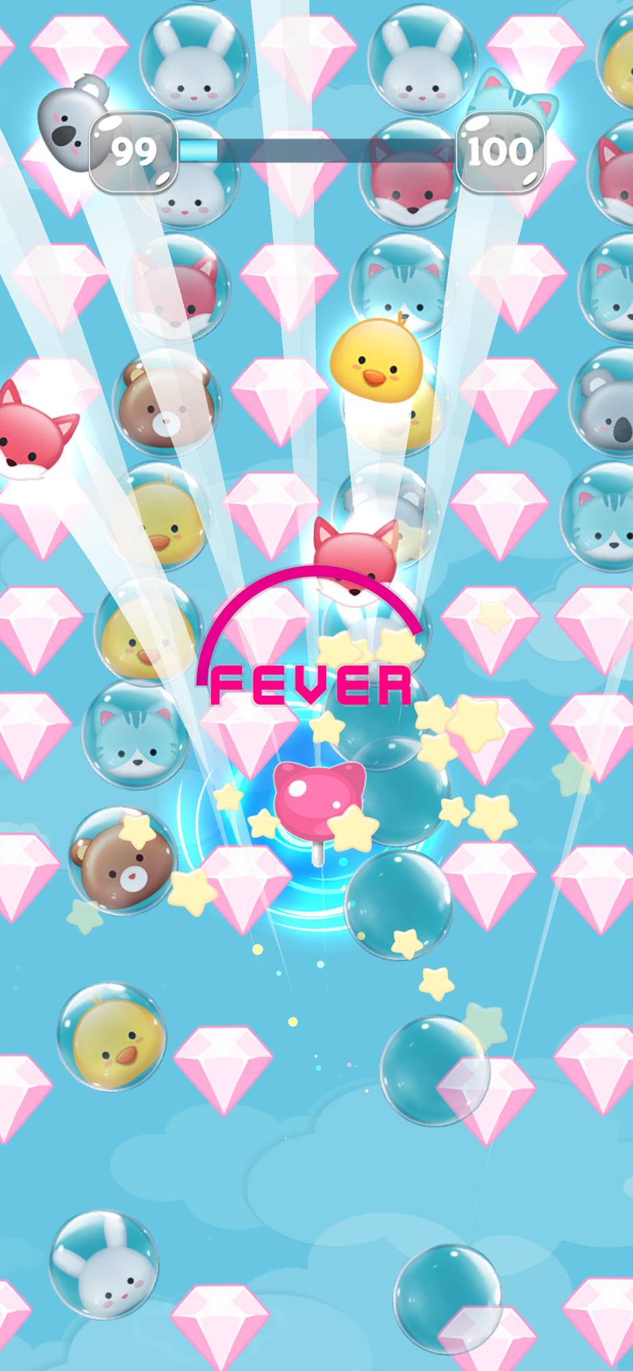 You use candies to break the bubbles to save cute animals, but if you hit a block, it's all over!