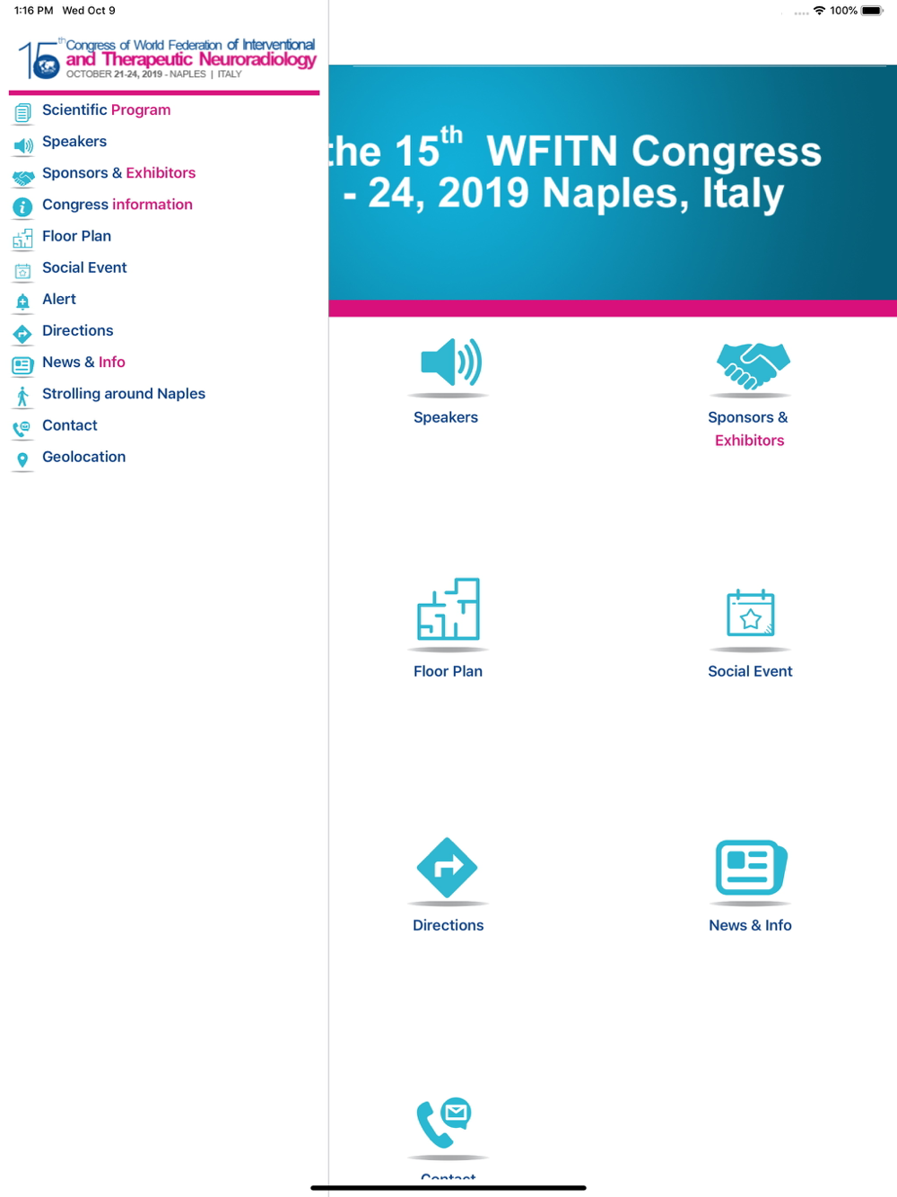 The app is meant to be a scientific tool to support the participants to the congress during their stay in Napoli.
