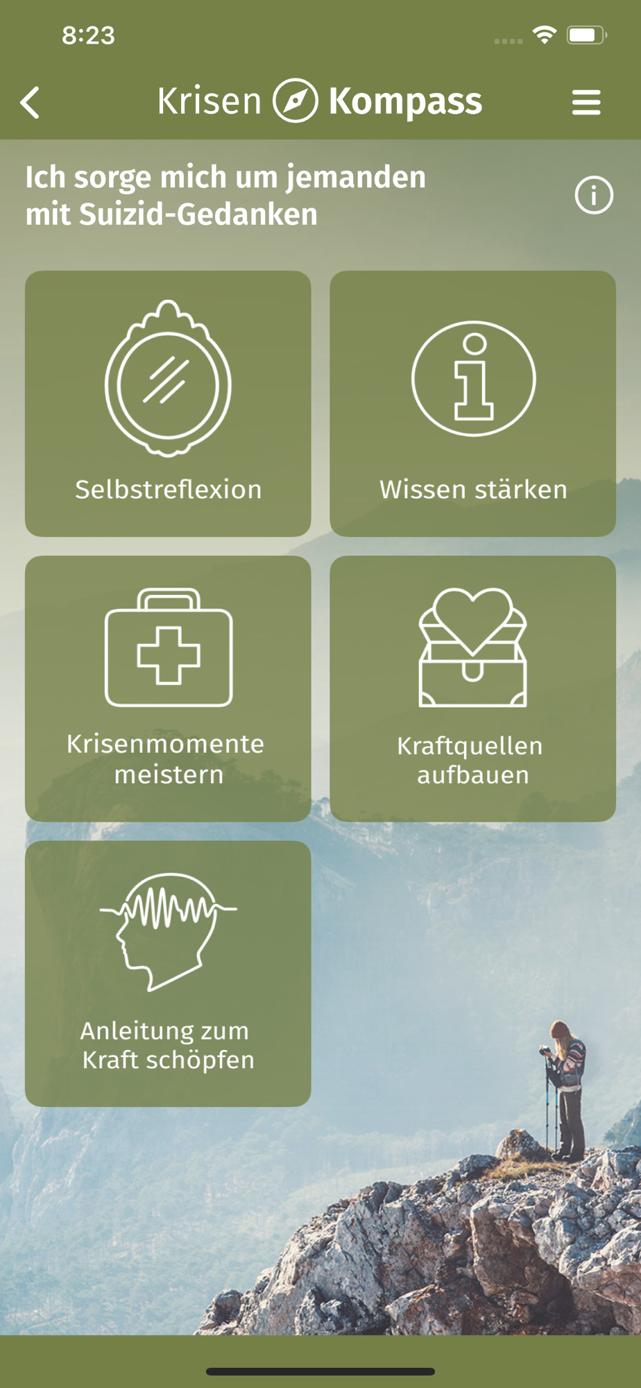 Zu allen Facetten rund ums Thema Suizid finden Nutzer der APP Mädchen und Jungen, Frauen und Männer Hilfe zur Selbsthilfe, wertvolles Wissen und Unterstützung in akuten Krisensituationen: