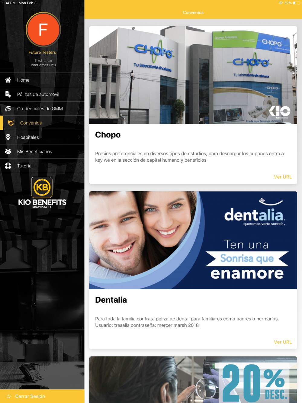 Encuentra detalles de tu seguro de gastos médicos mayores, pólizas de seguro de automóvil, conéctate con tu Business Parter y descubre todos los beneficios que KIO Networks tiene para ti.