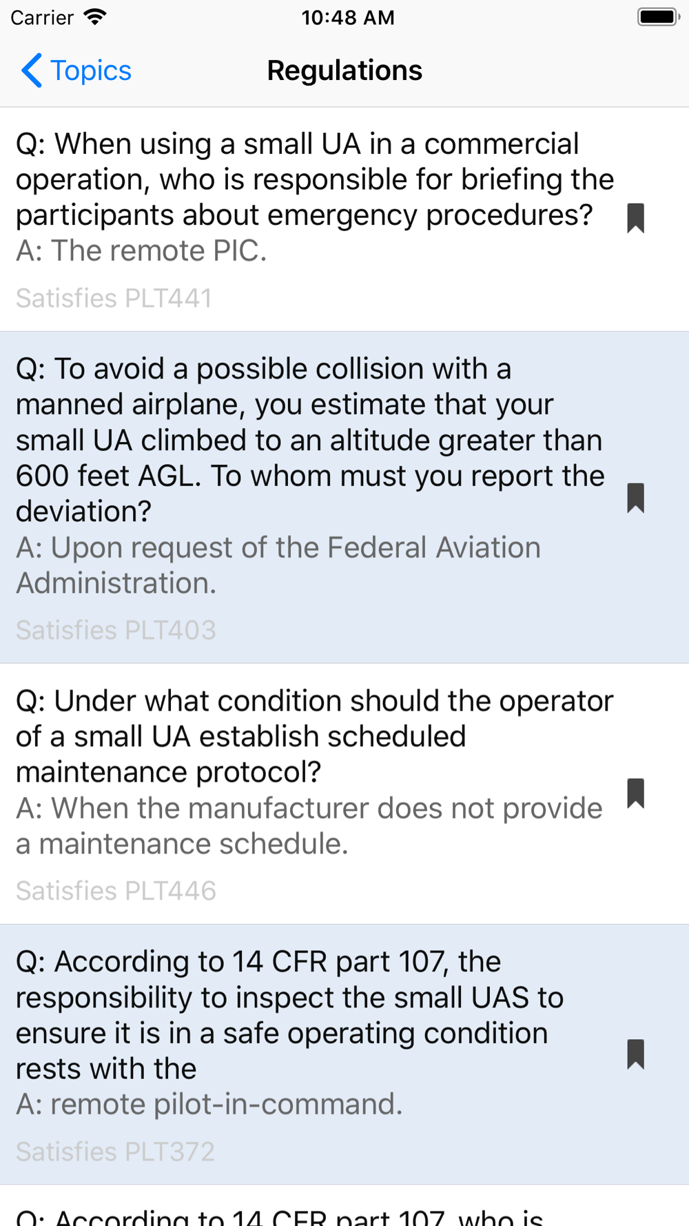This app does not provide any training. It offers a practice test that represents the scope and depth of the FAA part 107 exam along with a cheat sheet to review before the test. It is not intended as a replacement for personal study.