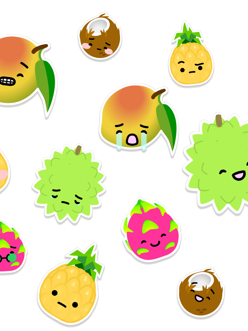 Meet the Tropical Tribe - Pineapple, Coconut, Mango, Dragonfruit, and Durian. They're your new fruity friends for iMessage!