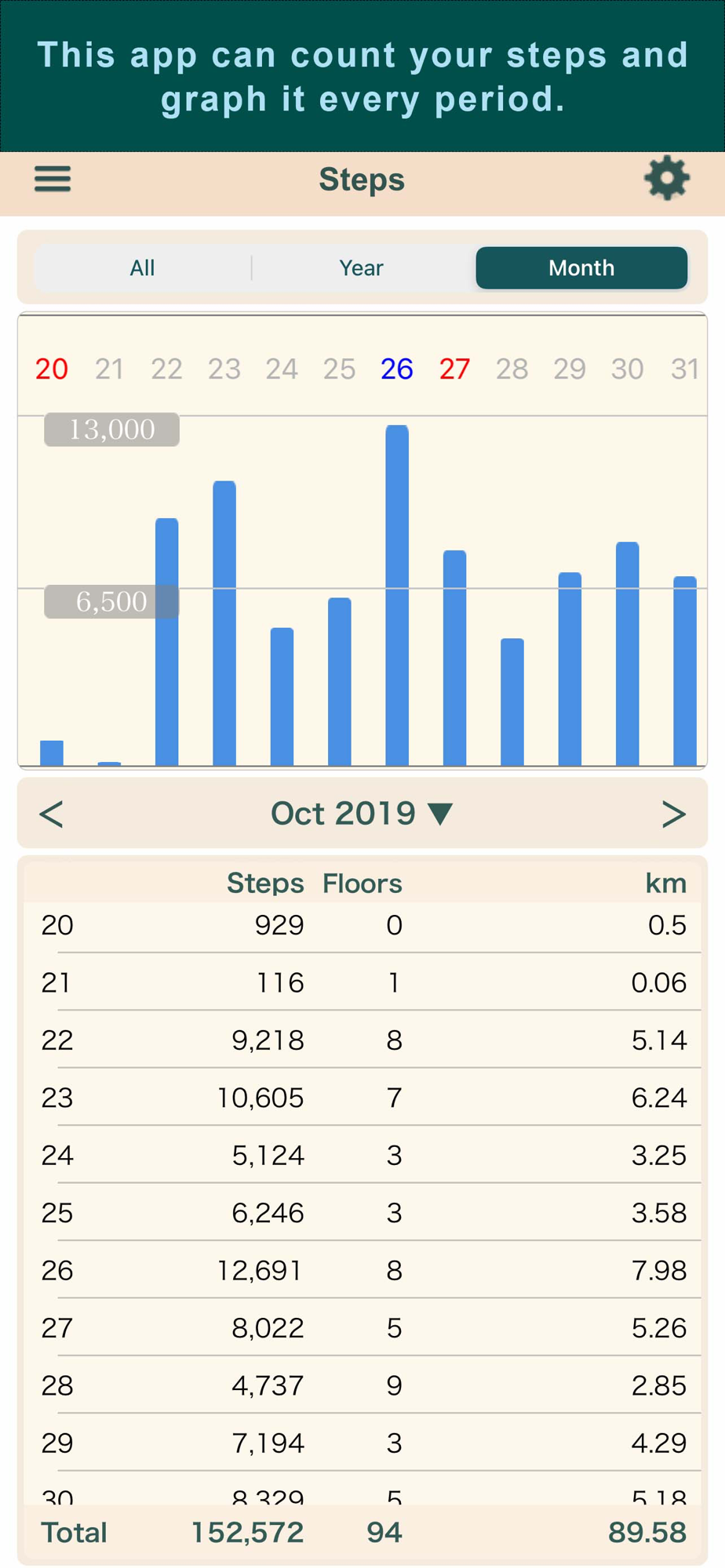 There is also a function that analyzes your movements and shows the results for each day, month, and year.