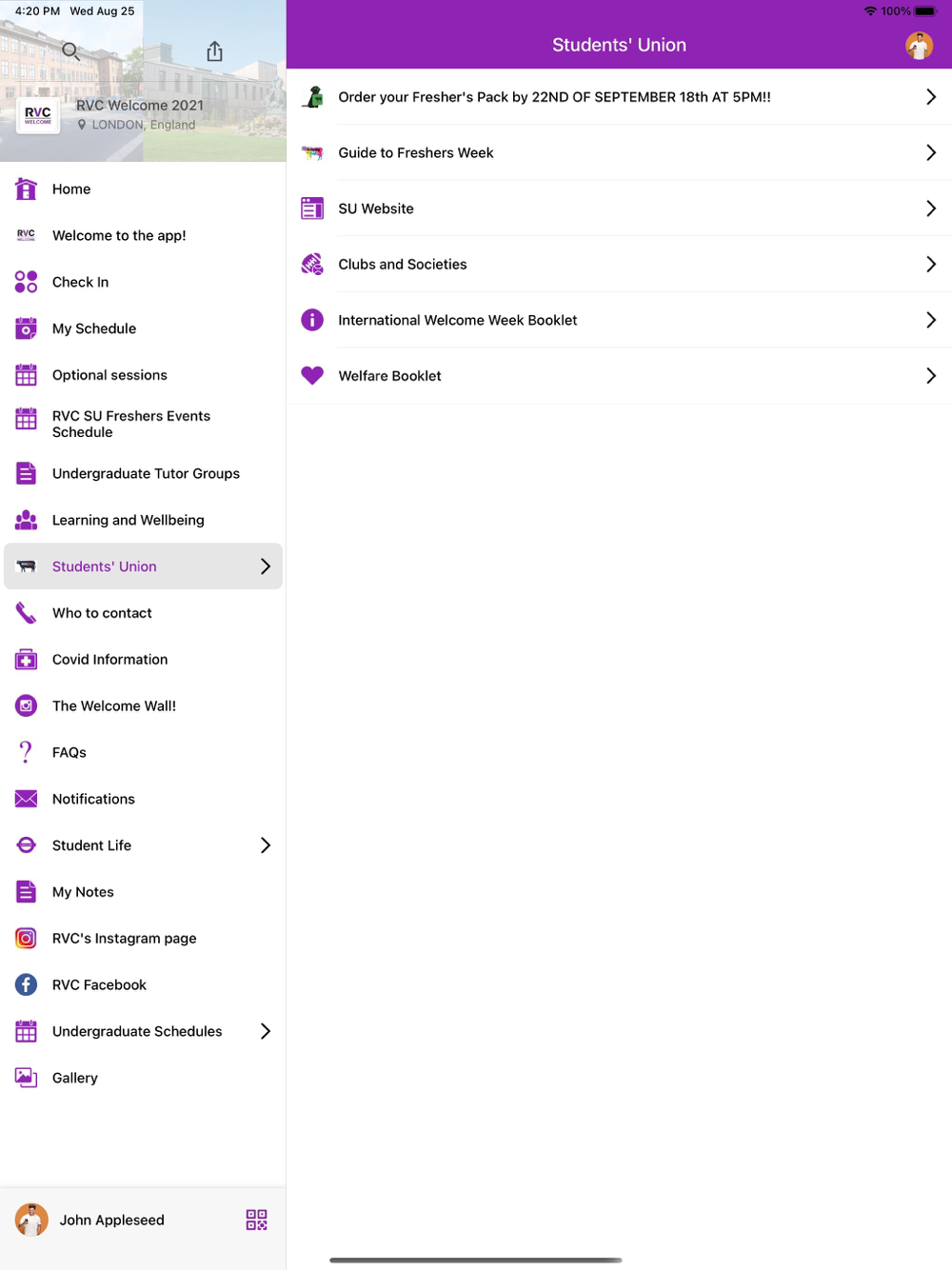 This app is the official Welcome app for undergraduate and masters students starting at the RVC in September 2021.
