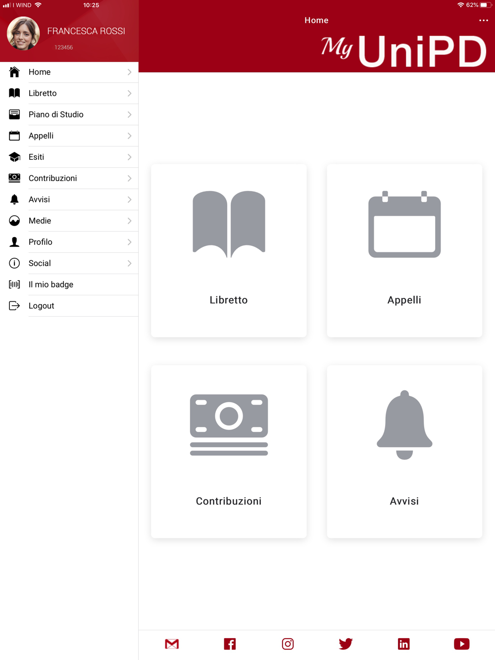 - visualizzazione del libretto elettronico e statistiche