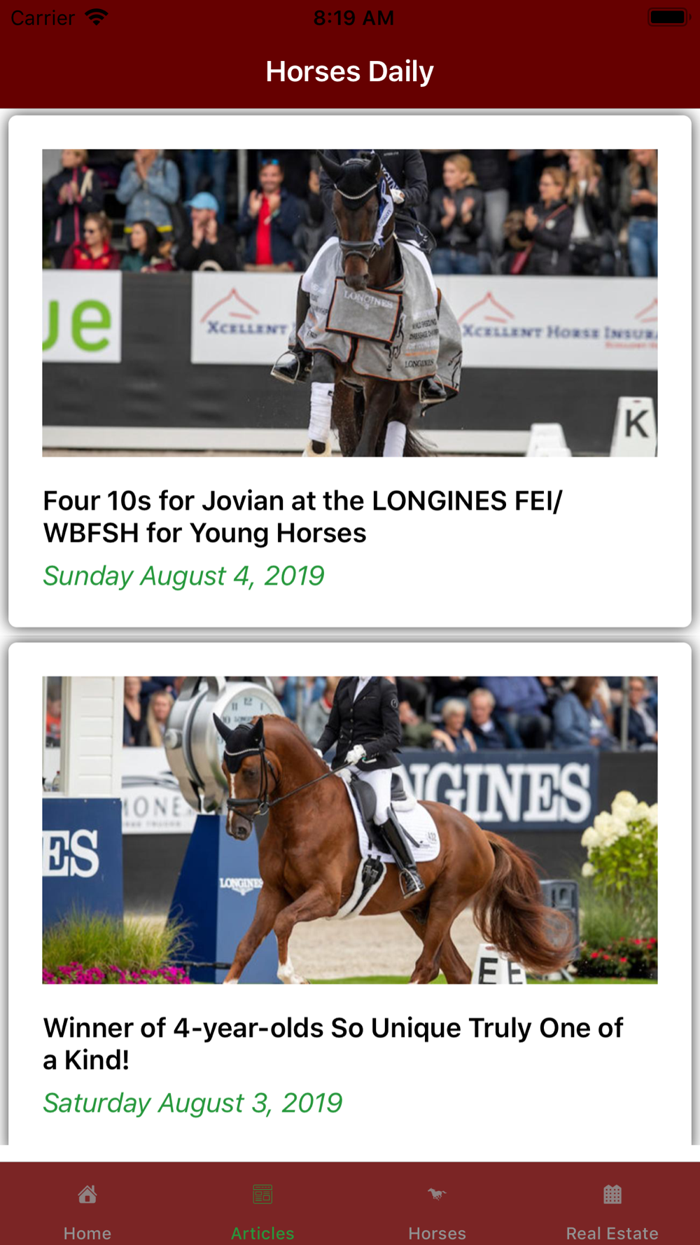 HorsesDaily.com (est 1997) is one of the oldest websites on equestrian sport. Bringing news, show reports, training tips, horses for sale, equestrian real estate and media marketing for the equestrian world.
