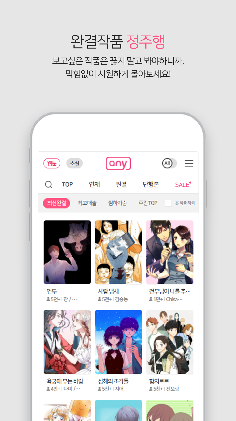 - [천일의 아내], [밀약], [여름의 시작] 등 팬들이 열광하는 독점 웹툰을 정식 연재.