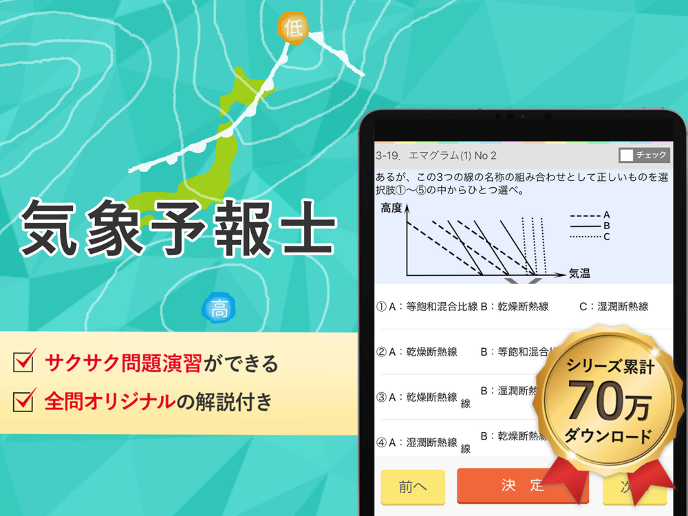 ・テキストだけでは足らずに気象予報士のテスト用の試験勉強アプリを探している方