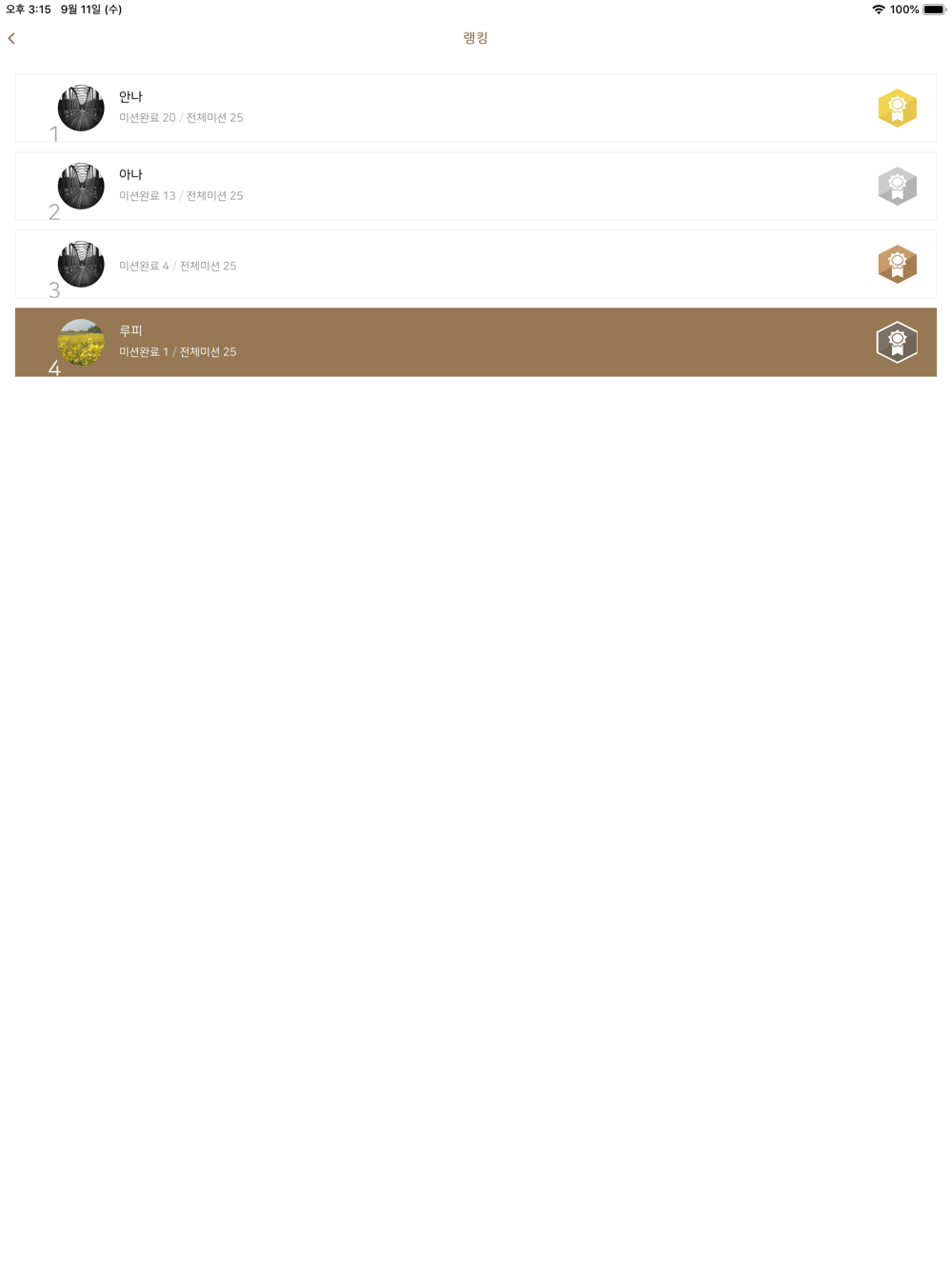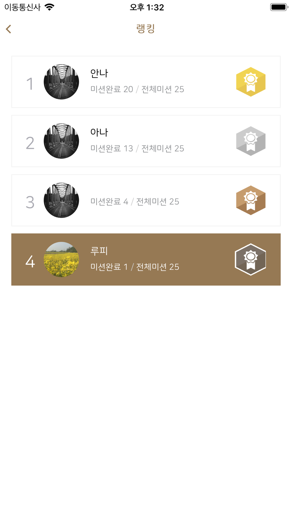 6. 모든 미션을 완수하고 내 랭킹을 확인한다.