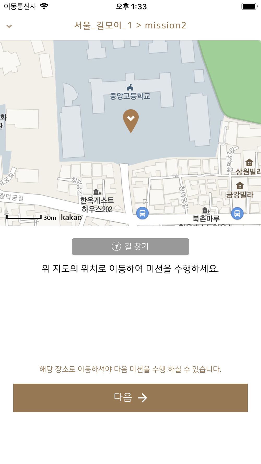 3. 선택한 코스를 지도에서 확인하고 첫 번째 장소로 이동한다.