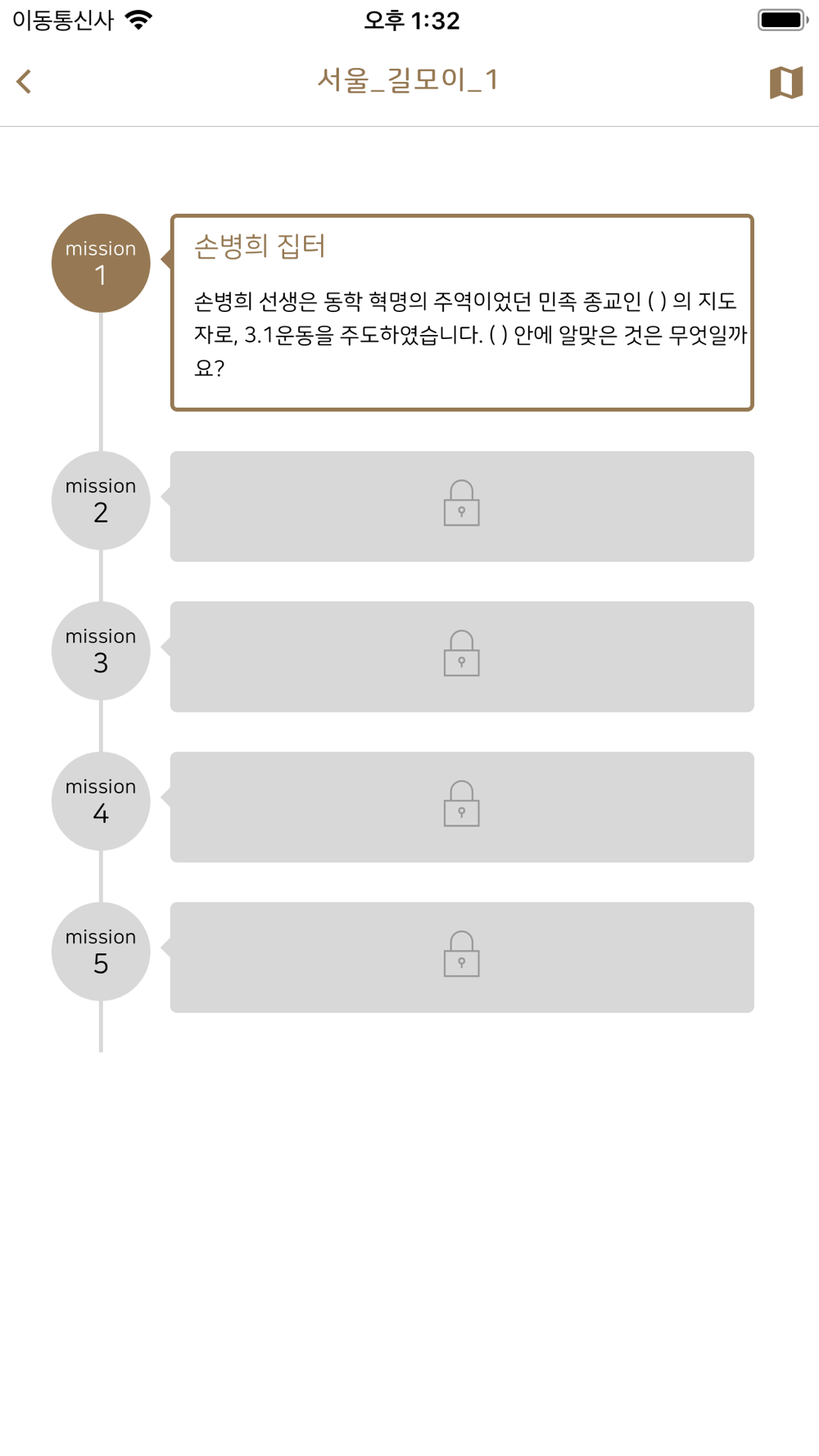 역사길모이는 개인 스마트폰을 이용하여 제공되는 대한민국의 근현대 역사의 현장들을 직접 방문하고 각 장소에서 주어지는 미션들을 풀어나가는 형태로 역사를 체험하는 서비스입니다. 선조들의 숨결이 남아있는 공간들을 방문하고 주어지는 미션을 해결해가며 선조들이 꿈꾸었던 대한민국과 지금 우리가 꿈꾸는 대한민국을 생각해 봅니다.
