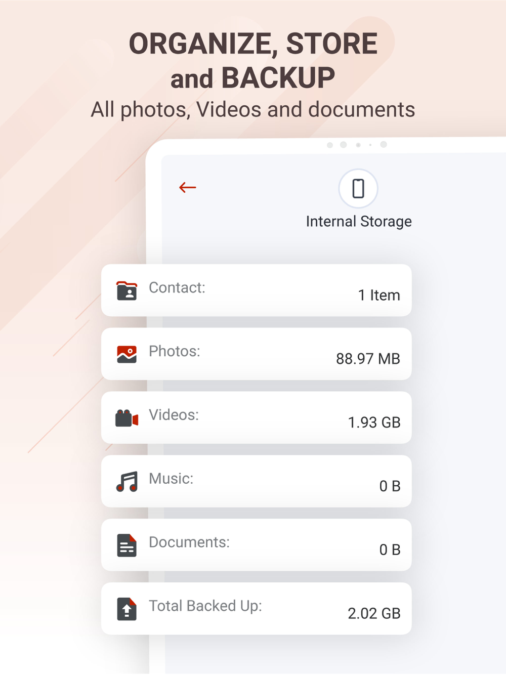 You can seamlessly backup contacts and restore them with the InfinitiKloud backup assistant. Restoring saved or lost photos has never been easier. And through the InfinitiKloud wireless transfer app, you can take advantage of the air transfer function up to 33 feet / 10 meters away.