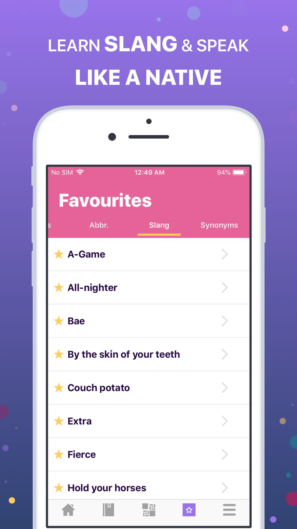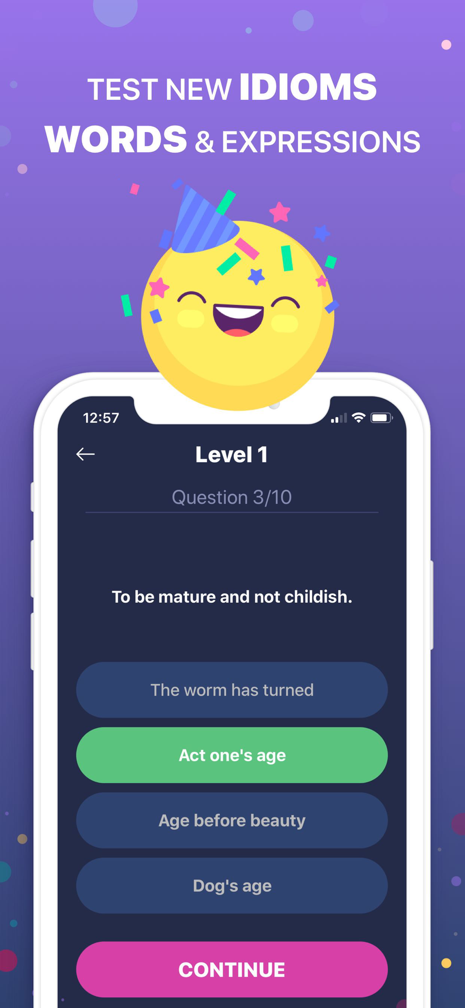 Boost your English in 1 month by playing fun games! Learn every day new idioms and expressions, slang words, useful text abbreviations and synonyms.