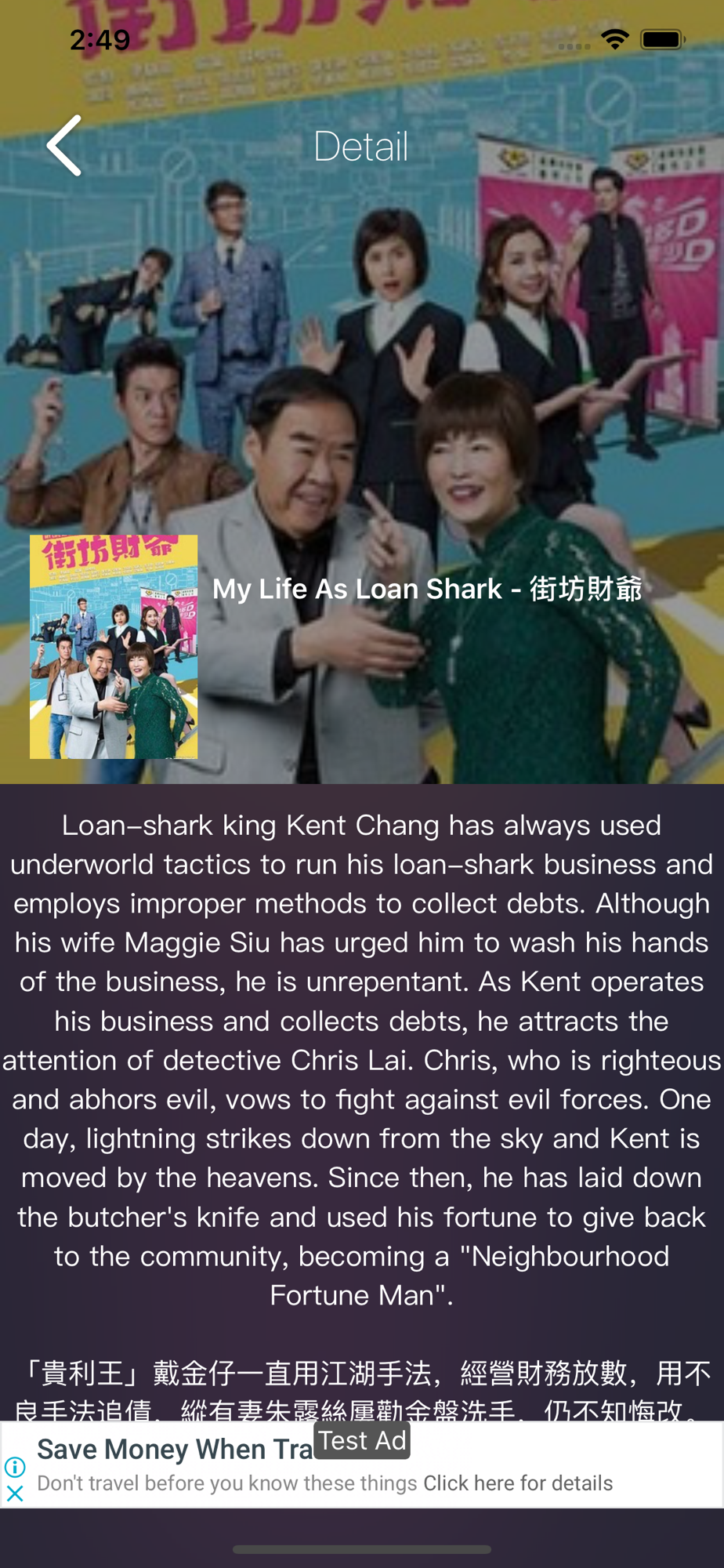 This app is a review app about Hong Kong TVB Drama. It allows user quickly check what drama is on show, what is the name, the description and the running time.
