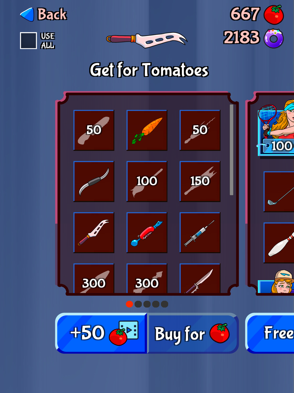 You can adjust our knife games to your style by switching knives, sounds and even the background to the one you like the most. Develop your own strategy of throwing knife and avoid hitting the other blades. To master throwing games you have to improve your reactions and throw very accurate. Collect tomatoes by slashing it with your axe, sword and dual blades, earn donuts and spend it all on new shiny food cutters! Share your high score with friends and challenge them to beat it! Everyone can play this game because it is easy and smooth. Try it and you won’t be able to stop the knife party. One of the funniest knife games - Food Cut - is waiting for you.