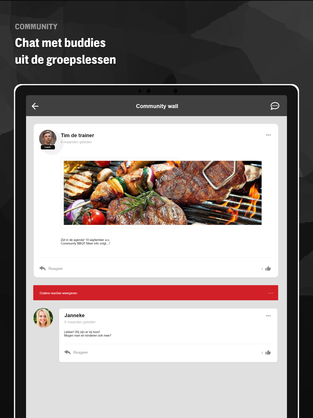- Houd je trainingprogressies bij en volg je trainingbuddies.