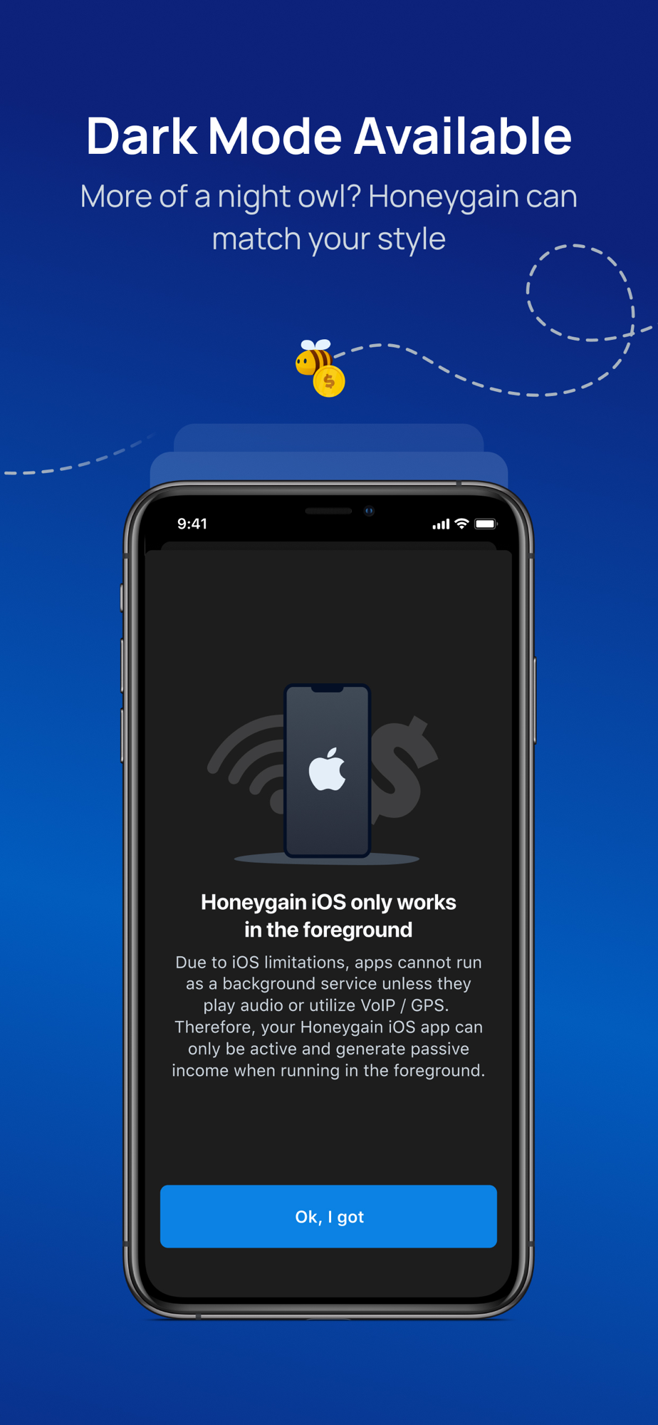 You earn credits for each and every KB of data shared with Honeygain. After collecting enough credits, you will be able to convert them to USD or crypto.
