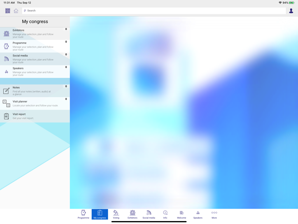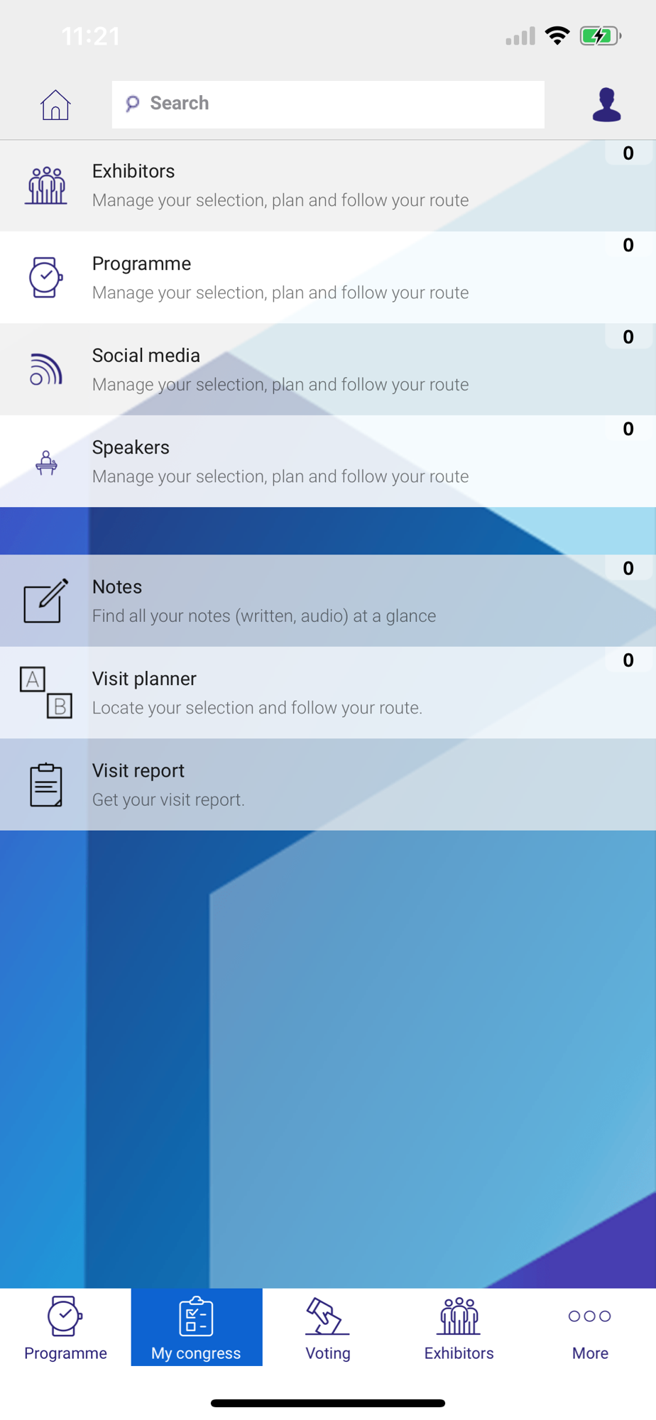 everywhere in throughout the app. Through "MyCongress" you can see provides an overview of your preferences and get your personal visit report