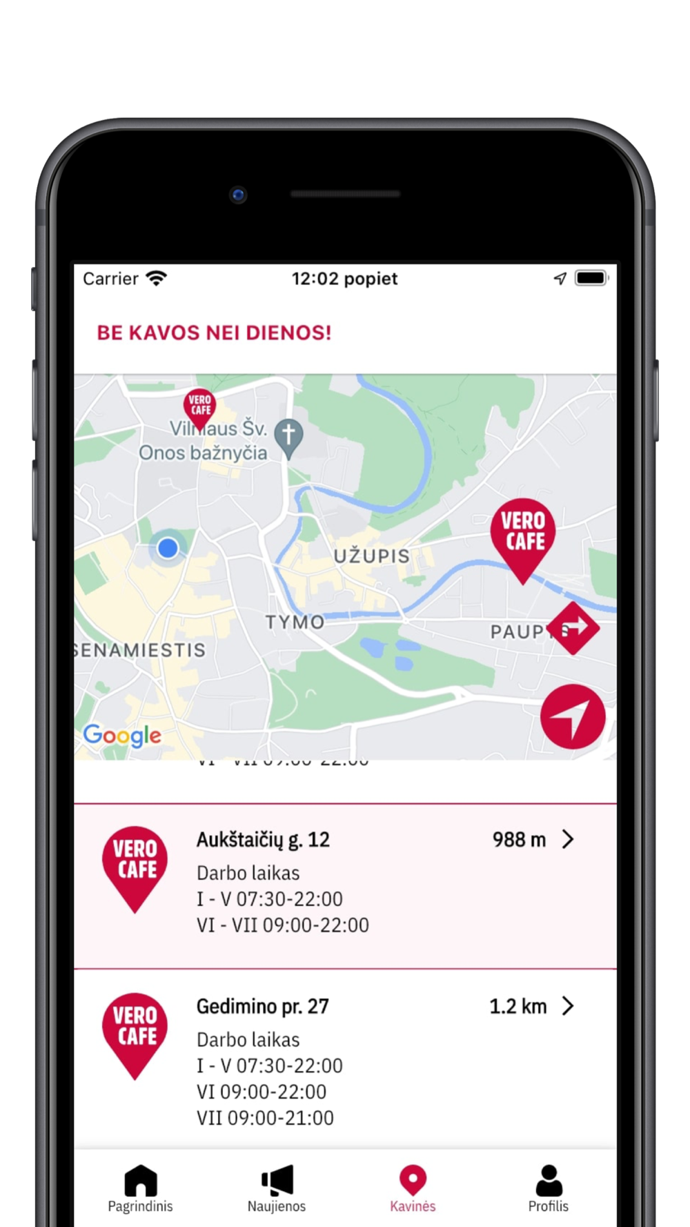 • Sužinosite, kuri VERO CAFE kavinė yra arčiausiai Jūsų, ir kaip ten nuvykti