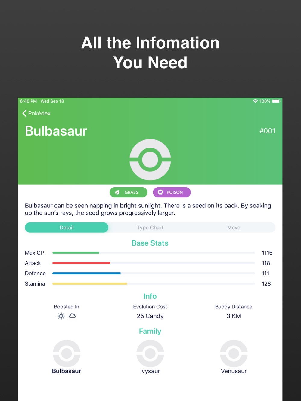 This app is highly inspired by Daniel Motta, Saepul Nahwan, and Pokemongohub. It's an unofficial Pokédex app and is not affiliated with the Pokémon brand, Niantic, Pokémon Go, or Nintendo.