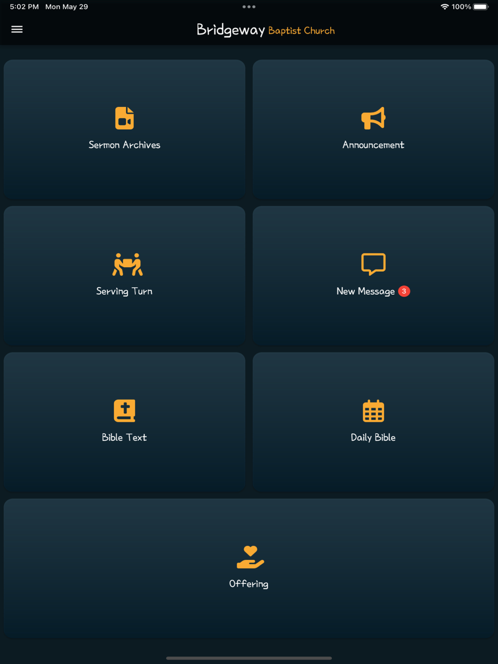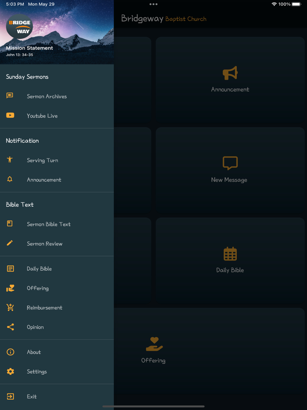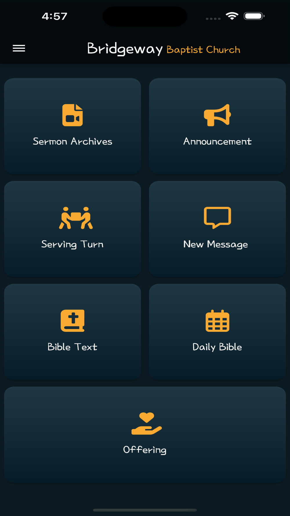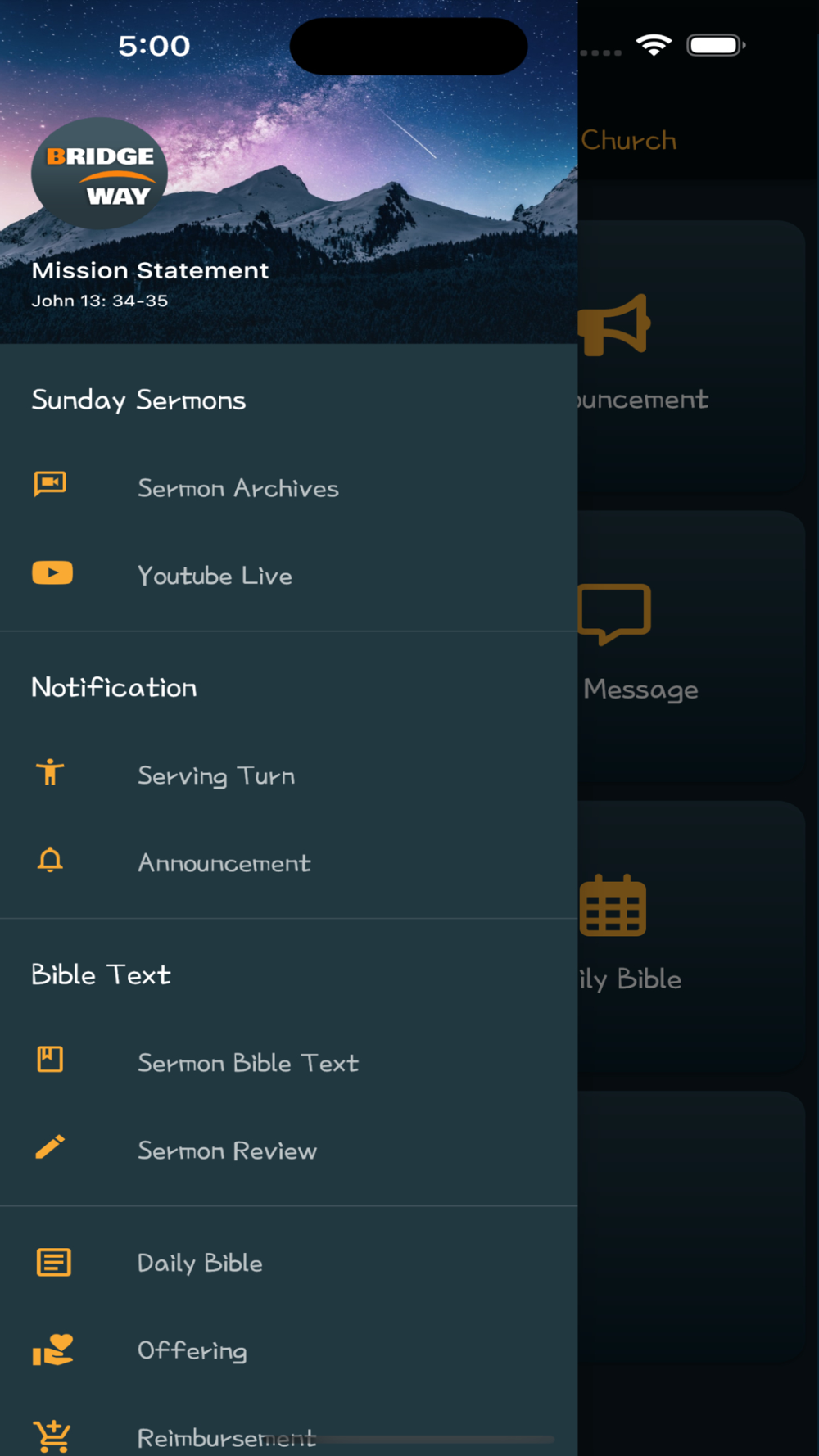 This application is designed for Bridgeway Church Korean Congregation in Palo Alto, California. There are following functionalities in this application.