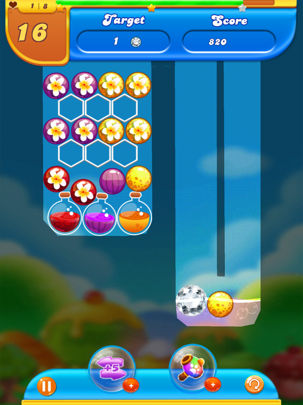 Your mission is to match all the fruity bubbles and pop them within the move limit to make a huge score. Match at least three bubbles of the same colour in one column or row before popping them. Be careful while making your choices since you will be given a certain number of moves in this free online puzzle game! Try to connect the bubbles before releasing the mouse to pop them! Feel free to opt for the rainbow bubbles to make the colour correction included in your combo!