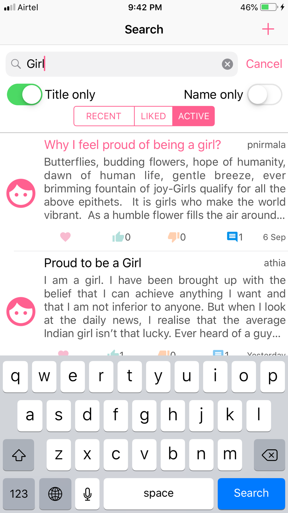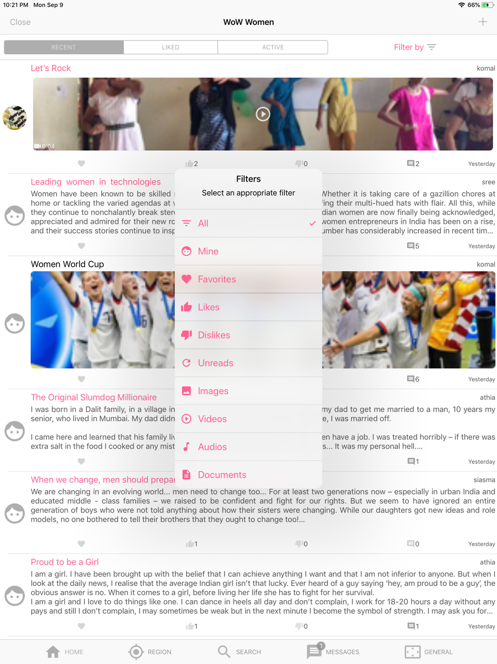 1) Women can post contents and medias and other women can comment or vote as like it or dislike it. Also mark as favourite which can be filtered later on. Useful sorting and filtering criteria are available