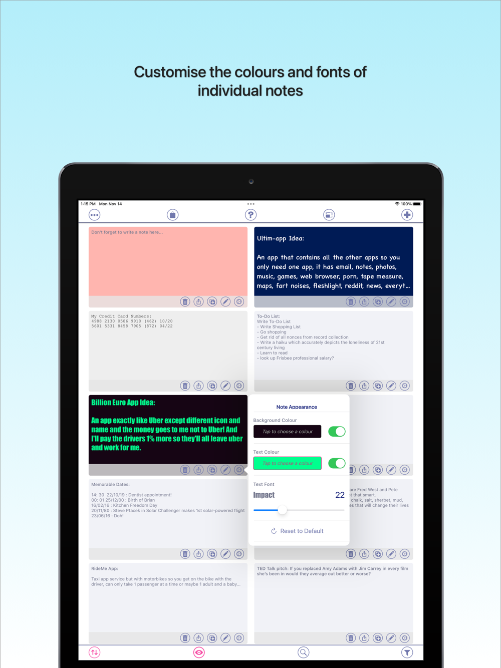 - Fixed bug that caused the wrong font size to be used for all notes- Fixed bug that would cause the wrong note to open after keeping auto-saved changes when sorted by date modified