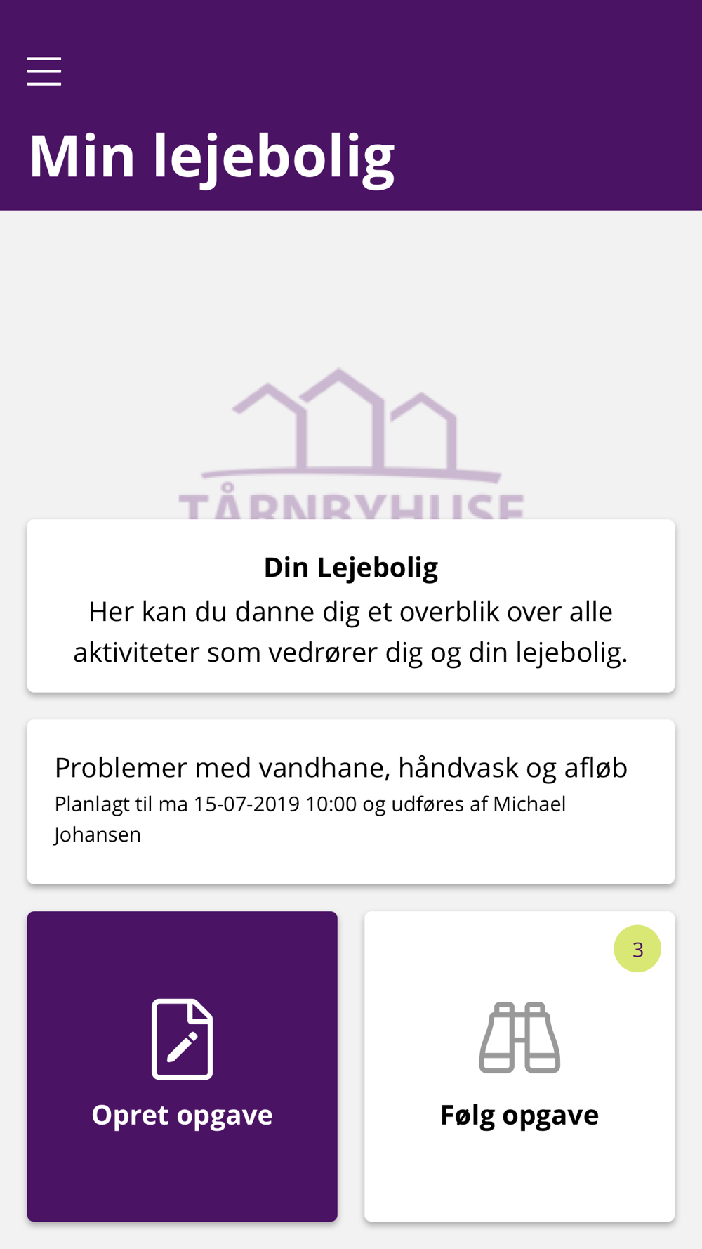 Som beboer i Boligorganisationen Tårnbyhuse kan du benytte denne til at sende fejlmeddelelser til din driftsleder, få information om dit lejemål og modtage driftsbeskeder om akutte problemer mm. Du modtager dine login oplysninger fra Tårnbyhuse. Har du endnu ikke modtaget dette kan du kontakte administrationen på 32 50 49 00