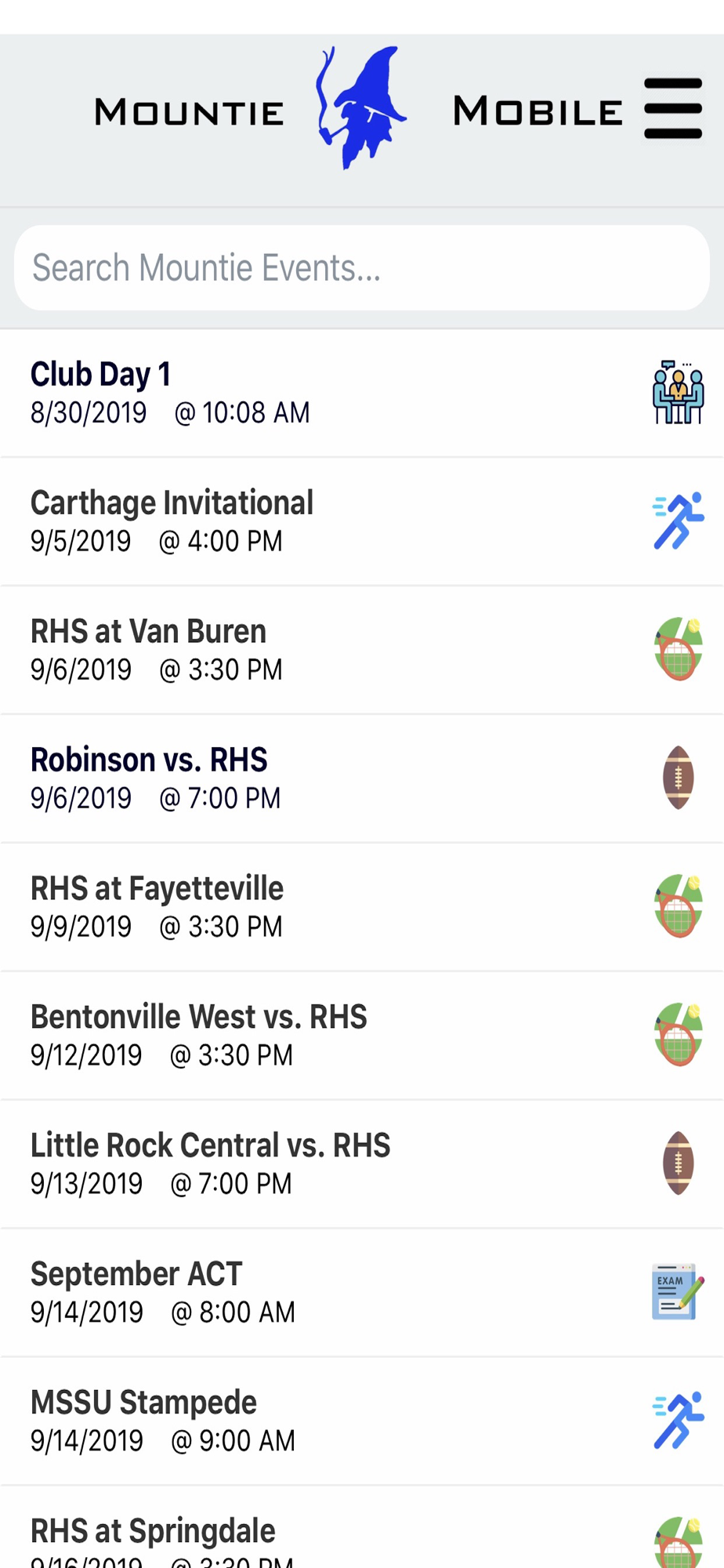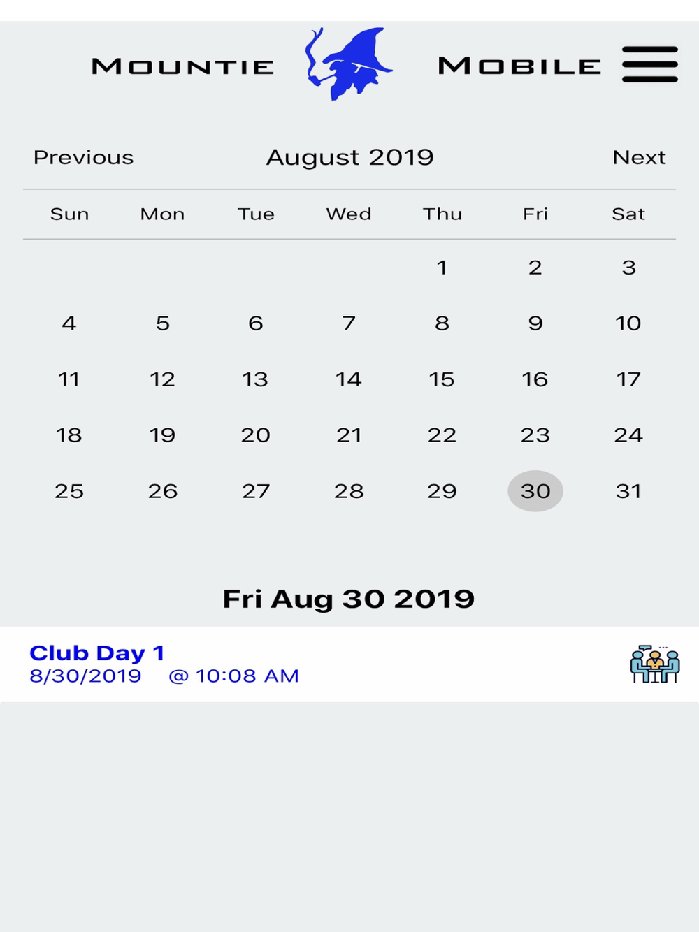 Mountie Mobile is an app created for students, by students. With it, you can get notified and informed of any future events happening on or off campus. We hope that all Mounties, past, present, and future, can use this app to improve the way they show their school spirit.