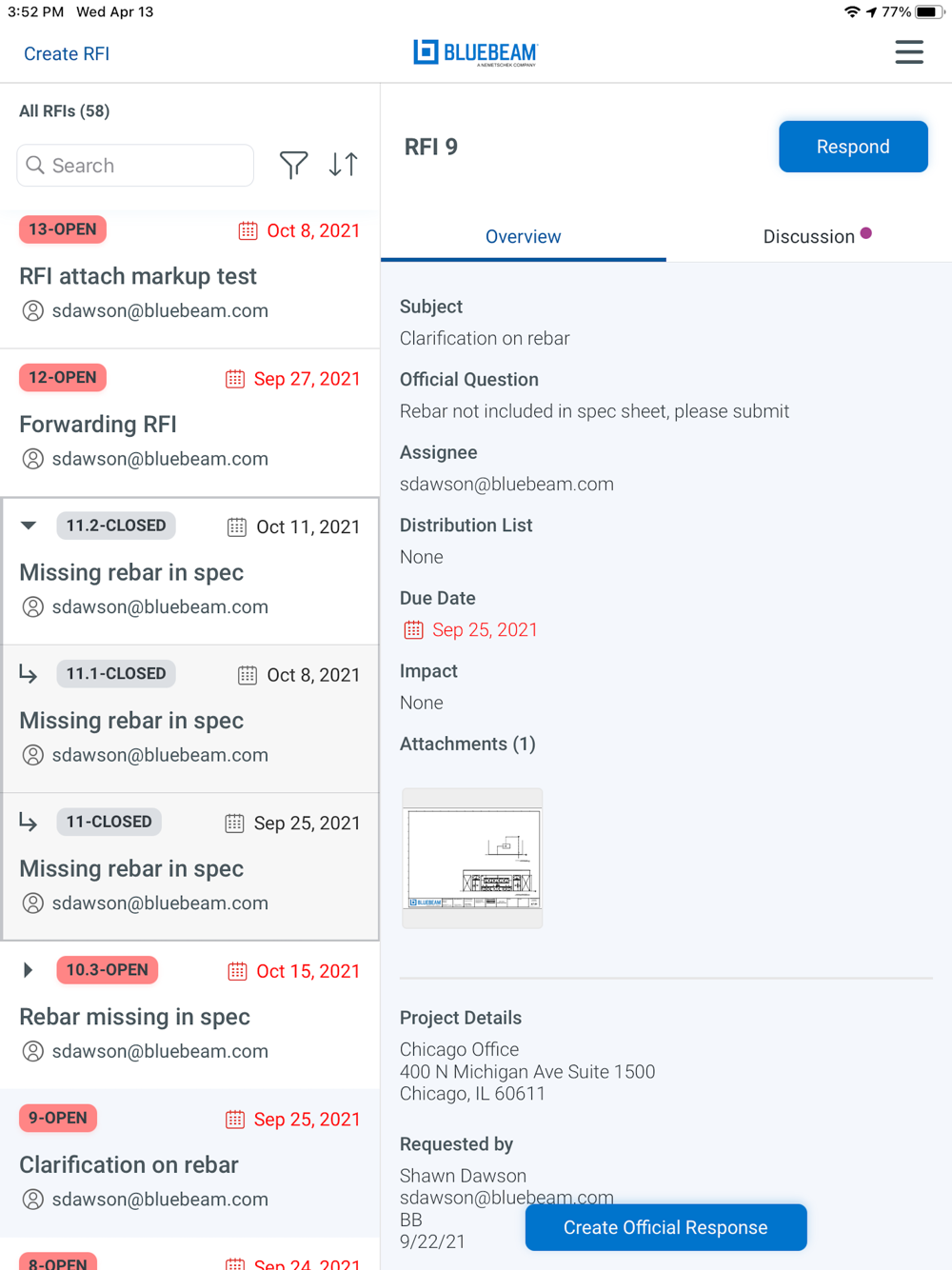 Effortlessly markup and collaborate on project documents, and manage punch, RFIs and submittals on the go with new Bluebeam Cloud solutions.