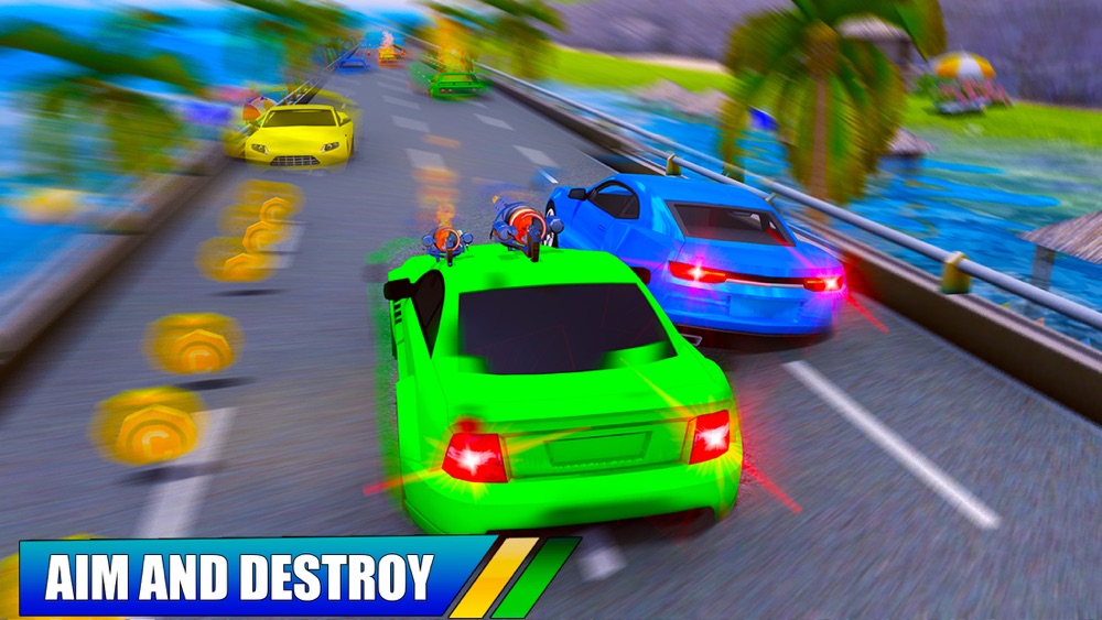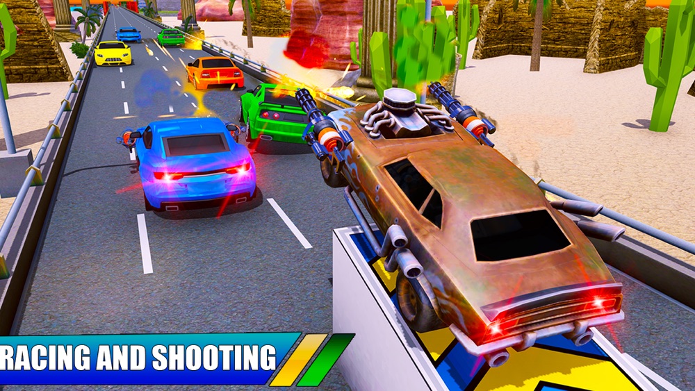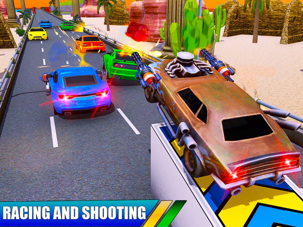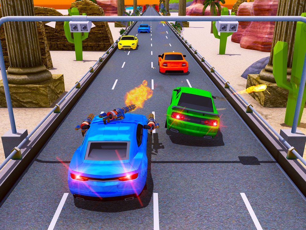 Join the race of death and defeat racing rivals to reach the goal. Compete against pro runners and dodge explosions, shoots, and traffic obstacles in every car battle. Burnout the asphalt in twisted circuits and kill your enemies in the best car shooting games gun games!