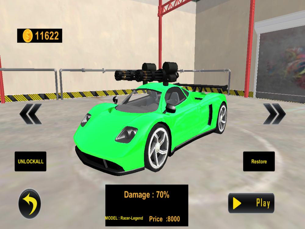 Become a car killer with the highest firepower! Choose between different weapons and equipment: missile launchers, assault rifles, shotguns, sniper rifles, machine guns... and many more!
