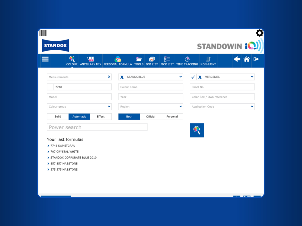 This clear but comprehensive cloud-based tool helps Standox bodyshops optimise quality and efficiency. It simplifies colour formula retrieval and makes product management easier as well as providing instant colour, product and software updates. The Standowin iQ App is an integral part of the Standowin iQ Cloud system and its intuitive interface, makes it a truly comprehensive and ‘must-have’ tool.