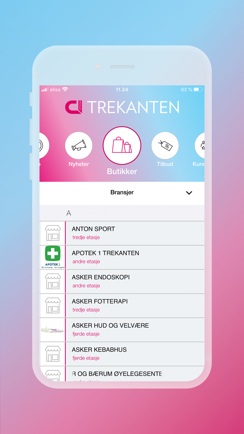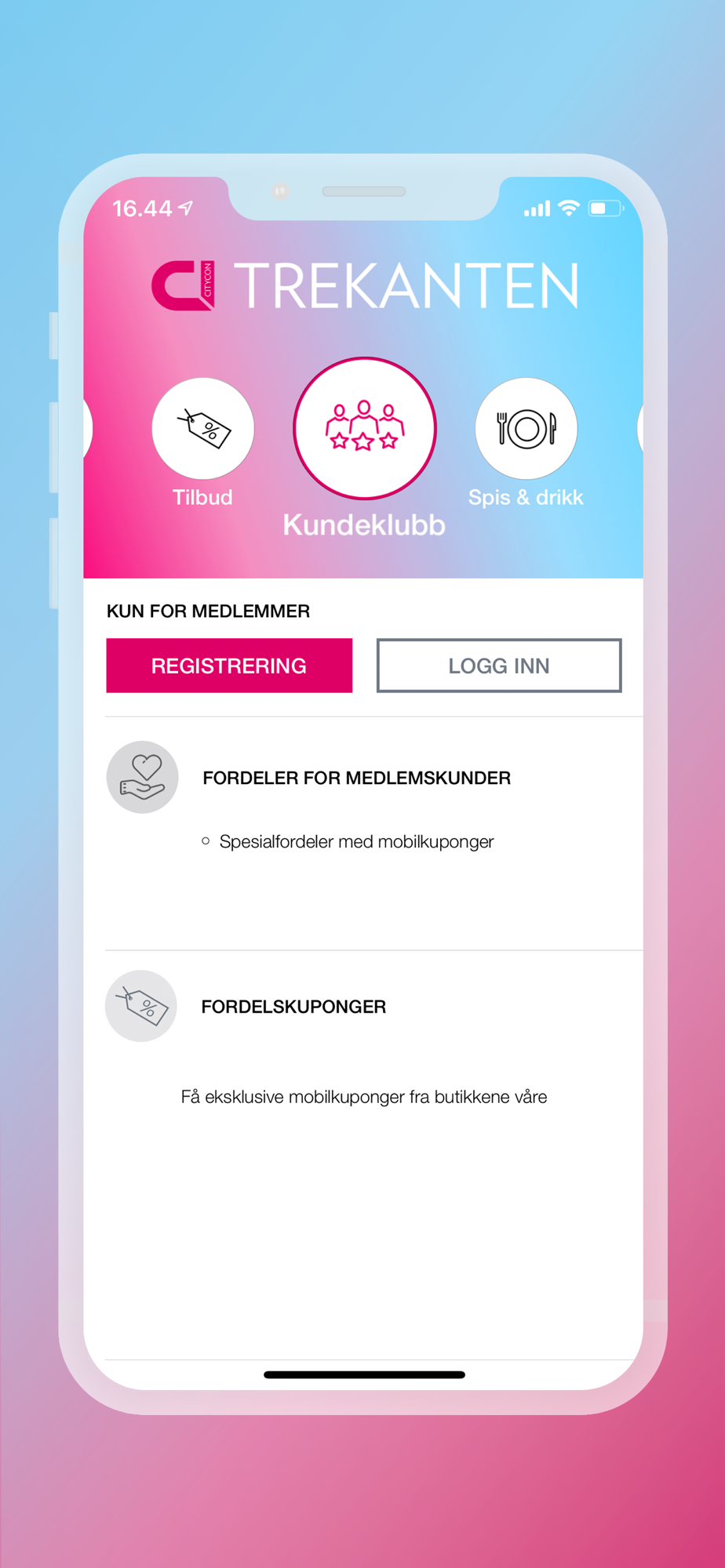 Mobilappen til Trekanten kobler dine personlige fordeler med den siste informasjonen om butikkene, nyhetene og arrangementene i kjøpesenteret.