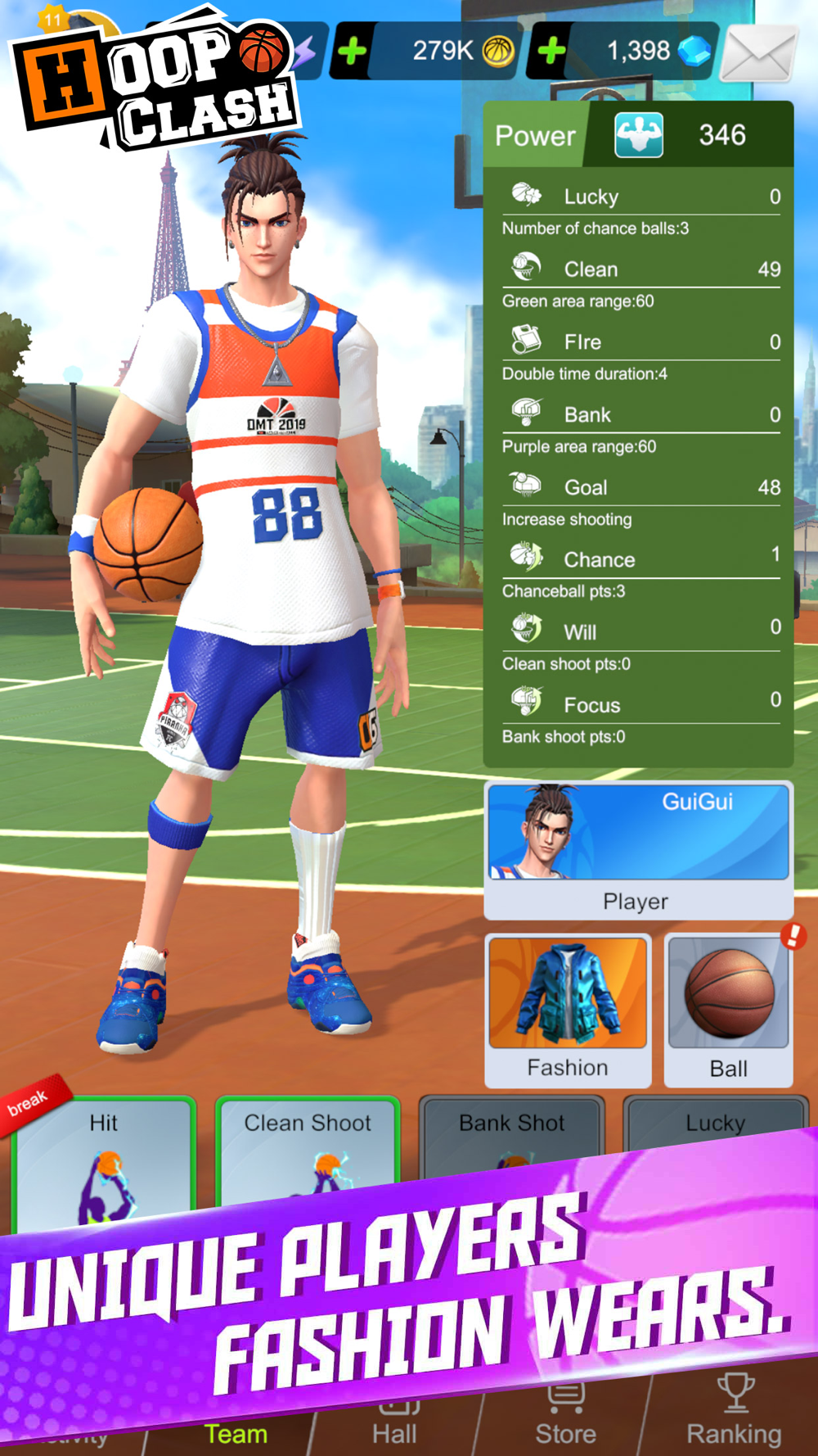 Hoop Clash is a 3D HD comic sytle, 1 on 1 PVP basketball shoot casual game.