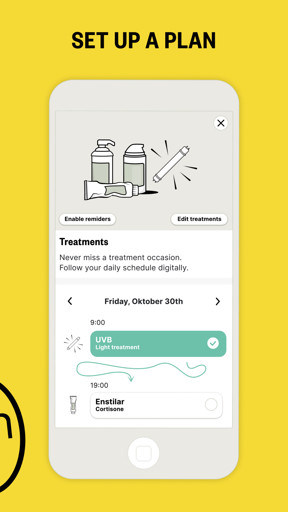Follow our verified treatment plans that covers all treatment forms for Psoriasis and Atopic Dermatitis: Emollients, Cortisone creams, Systemic treatments, Biological medicines, Bucky and UVB. Share your #itchyjourney to get featured on our channels!