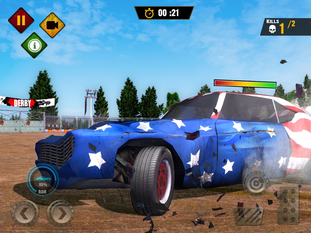 Each level of Derby Demolition 2019 has a different mission that you must complete to win the level. Survive in the arena and destroy the minimum number of cars shown in each level to go on to the next.