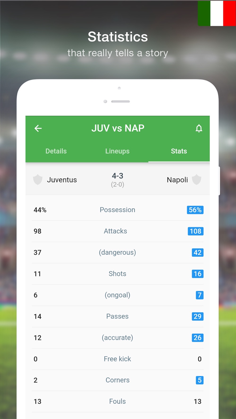 We believe that our app has all the perquisites to be your companion, while you enjoy one of the best soccer leagues in the world, Serie A.