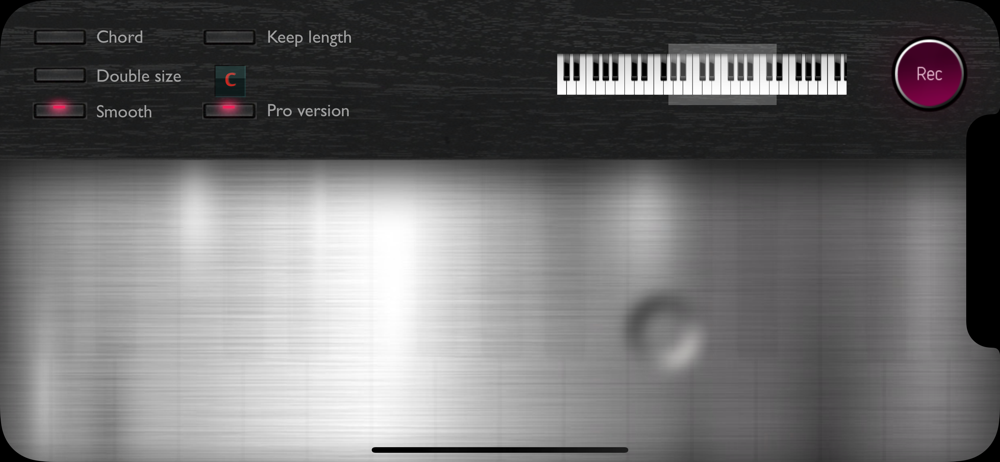 Record your voice or any sound and play the piano with that sound. Press the top-right button to start recording and release it to stop recording.