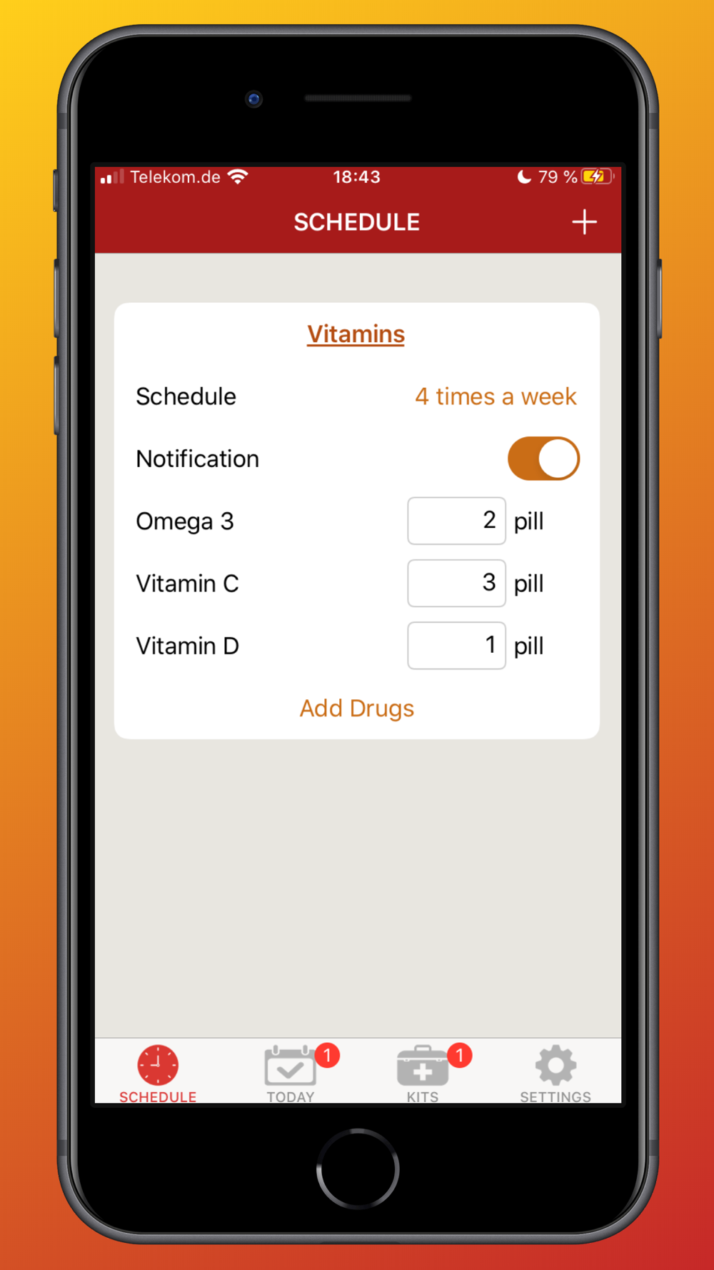 Flexible notification settings allow you to create as many notifications with as many details as you need - from several time a day to a specific weekdays.