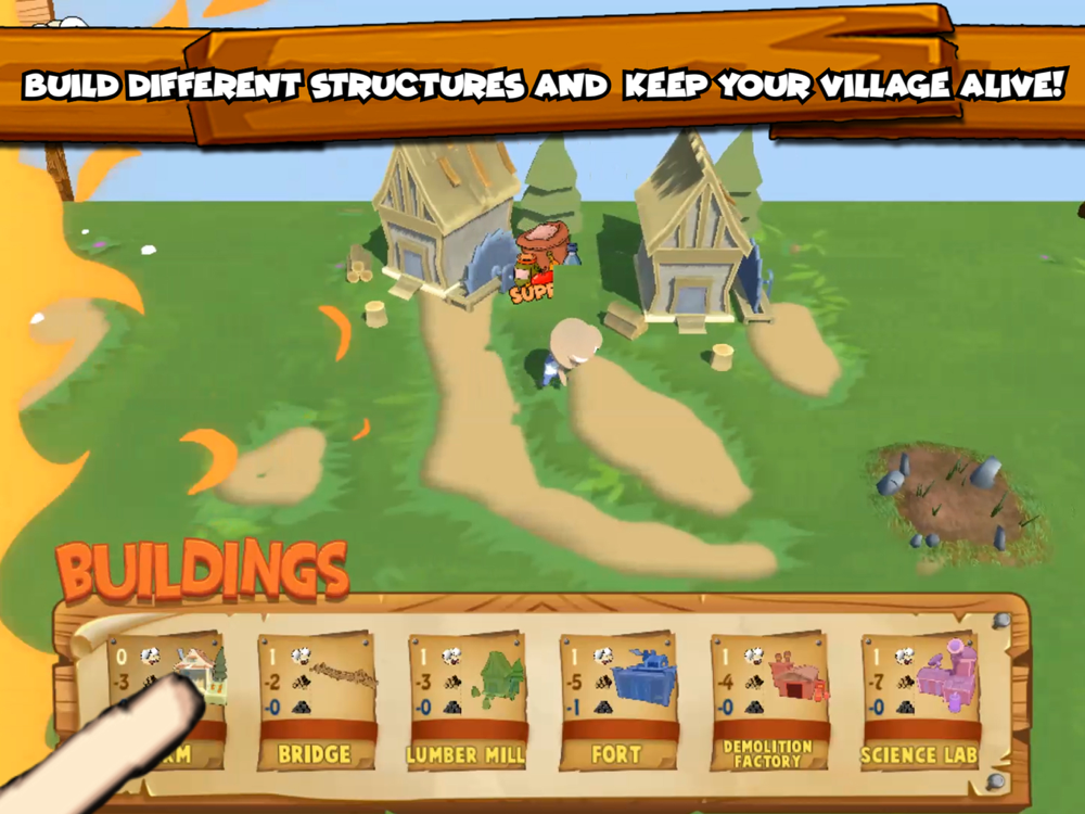 - town building on the fly! A variety of buildings - upgrade them for a more effective town!