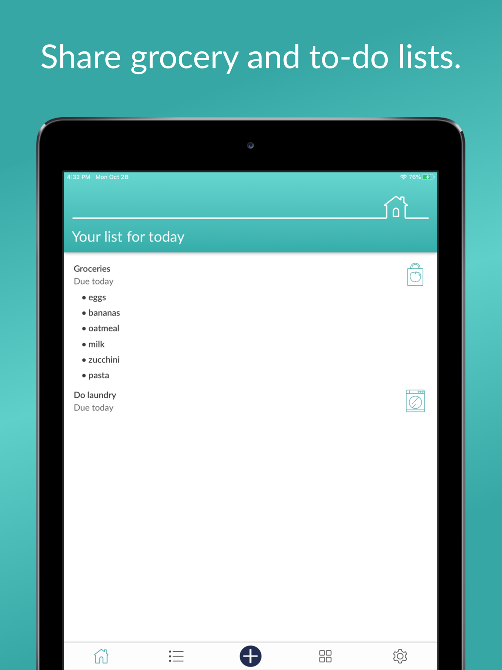 • Create reminders, shared grocery lists, to-do lists, and one-off tasks