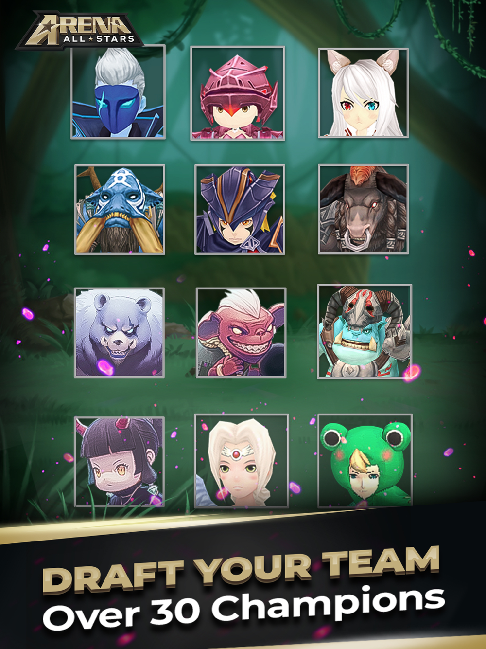 Arena Allstars is a turn-based strategy game where you compete with up to seven opponents in an epic real-time battle. If you are looking for a quick matchup, choose Team Co-Op Mode and take down your opponents in less than 10 minutes. If you are looking for a solo adventure, go on an epic journey defeating bosses, leveling up your champions, and earning treasure chests along the way. Draft your team, execute top-level strategies and strive to be the last person standing!